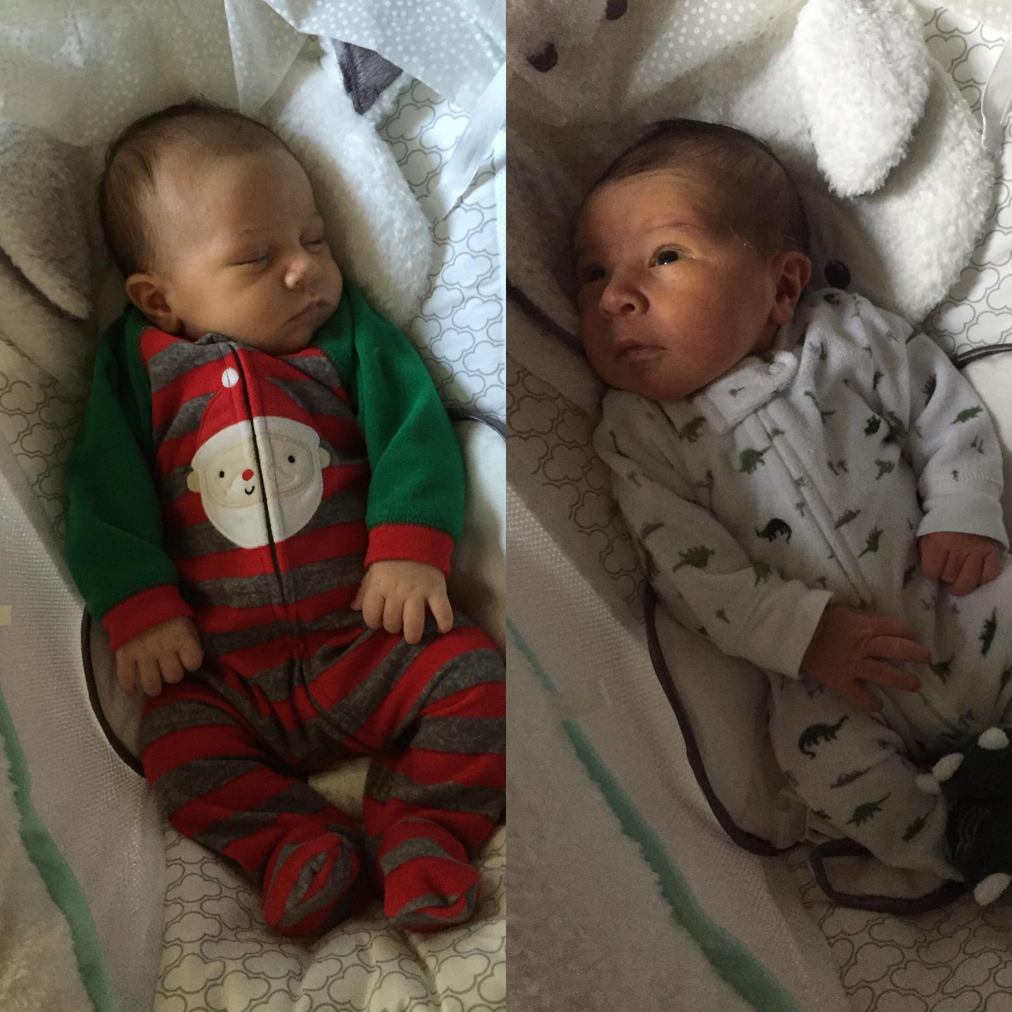 Sorry late to the party been crazy busy with 4 kids 5 and under that I haven't posted in forever! Here is J.J. At Christmas and then this week at 9wks old (12# 6oz 24in) He is such a mommas boy I don't get much done! The last pic is of him and HIS niece that is only 5 wks younger, she pint size at 6#15 oz now!