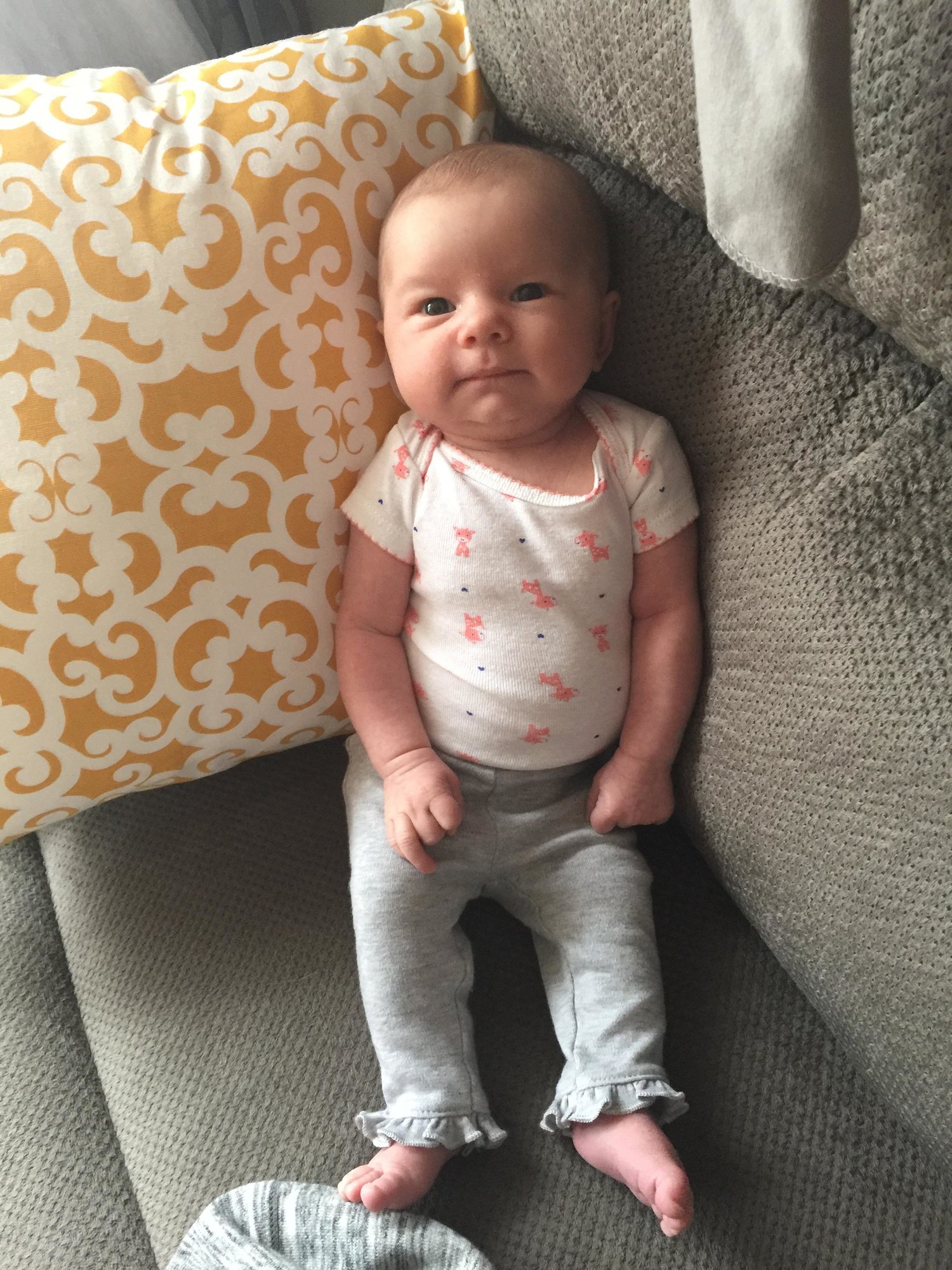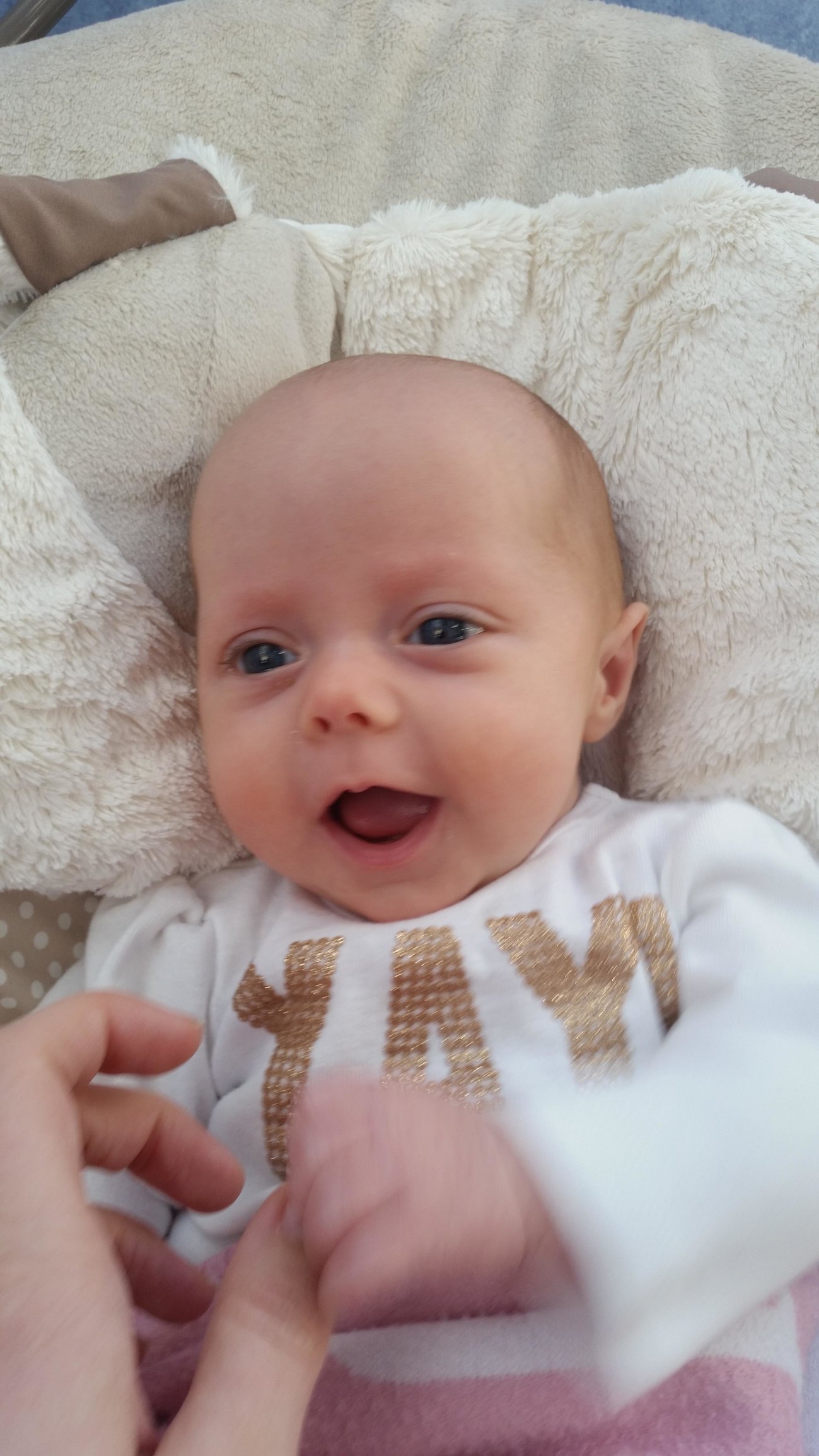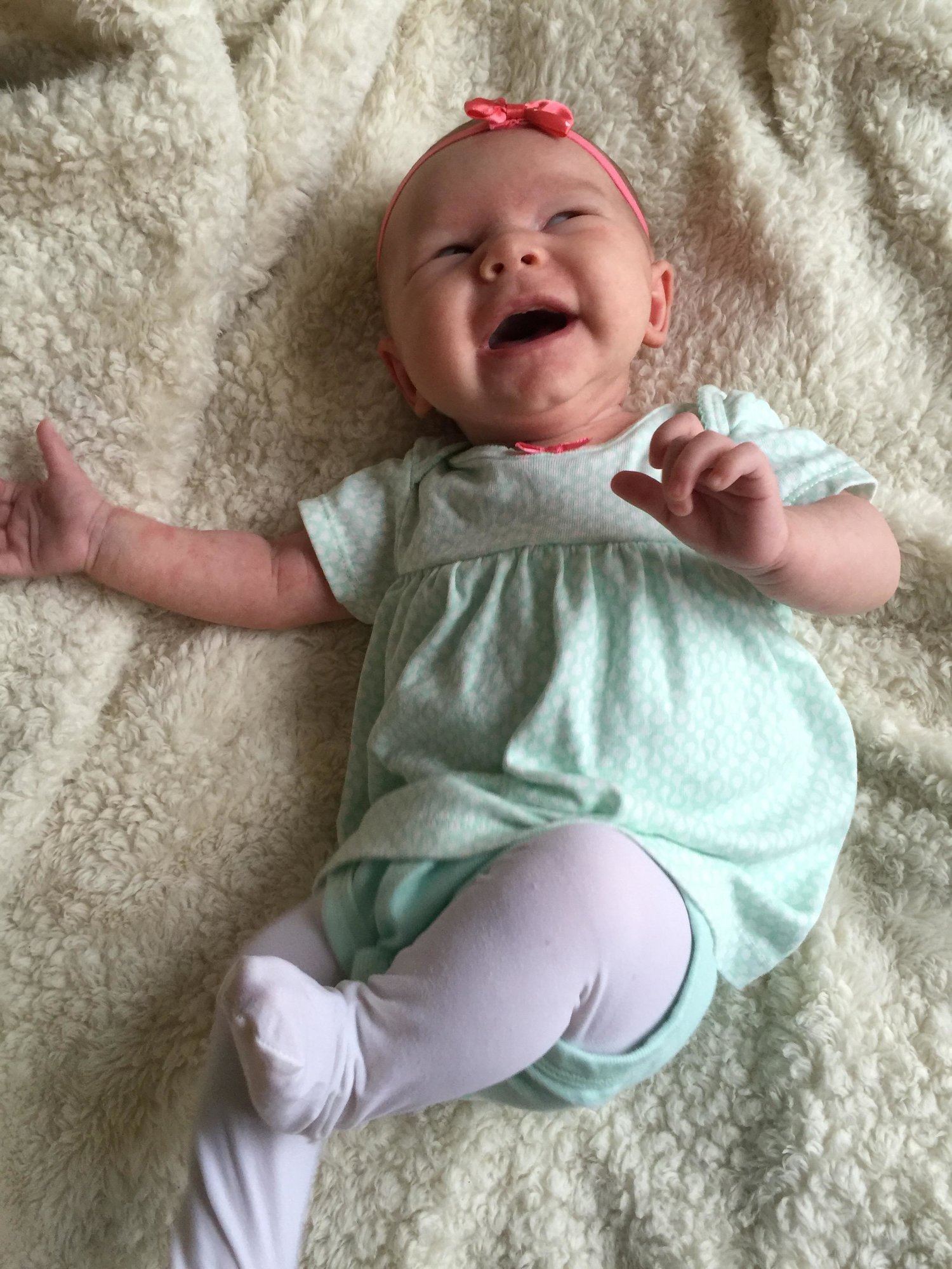 Can't believe my little turkey Cecily will be 6 weeks tomorrow!! She really started smiling this week, although it is nearly impossible to catch a picture of it!