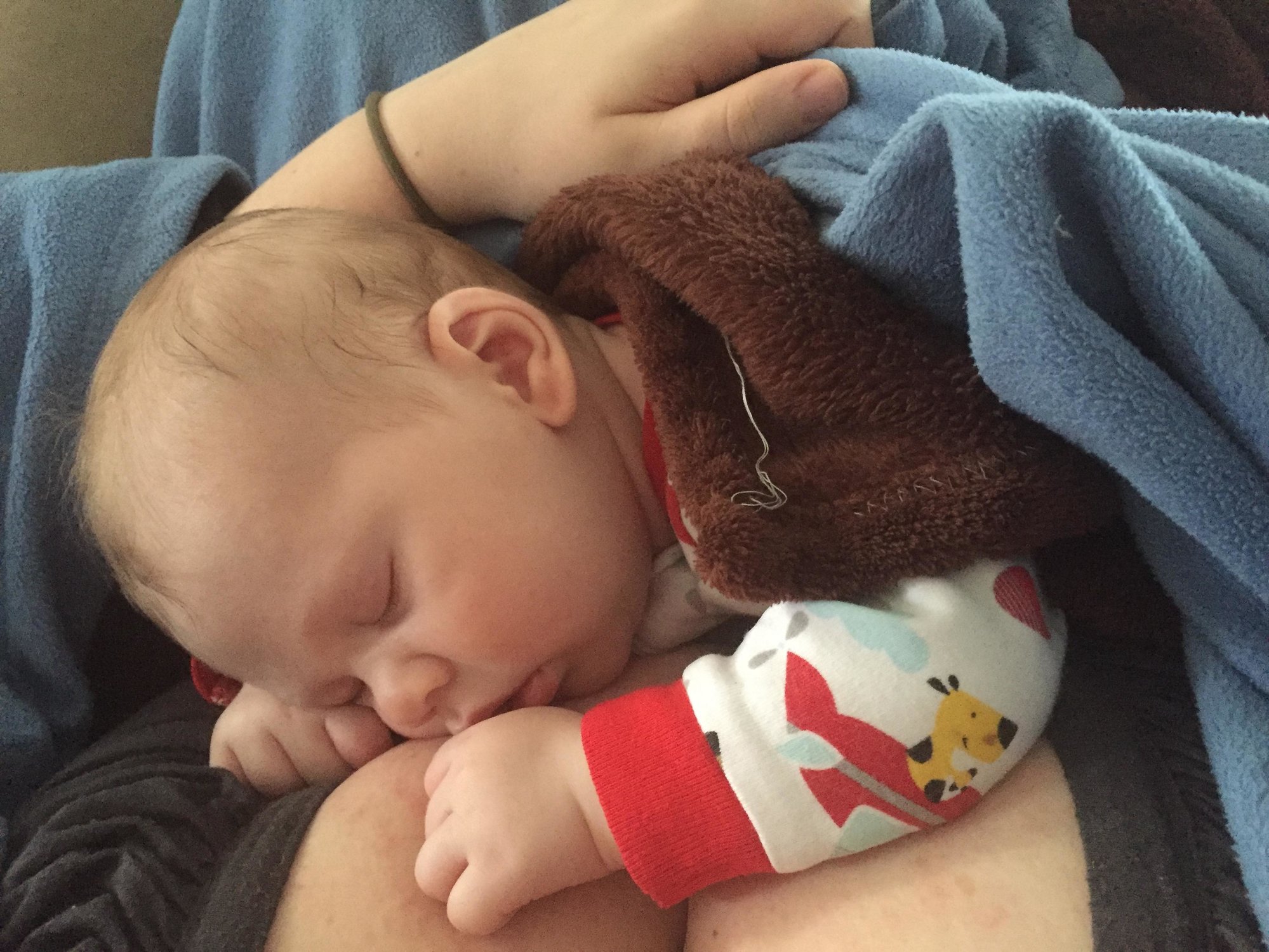I had tried laying him in his bed. He woke up crying. So I tried laying down with him on top of me. He started screaming. So I finally got him back to sleep and don't dare move even though I really have to pee and I'm hungry lol