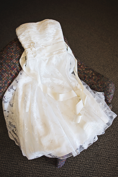 GTKY: After yesterday awesome wedding colours show & tell (thanks @PeggyOlsonFTW) it seems only natural to move onto wedding dresses/dream dresses if you're not married yet. I can honestly say I was a very easy going bride, however the whole dress experience was THE WORST! Ended up with a coupon for $500 off a dress, which was amazing but the bridal shop was terrible to deal with. I purchased the dress a year in advance and they only managed to get it in 8 weeks before my wedding. Then they had it another 6 weeks for alterations and when I went to pick it up they hadn't even started the alterations! As I was sitting in the lobby waiting to pick my completed dress up, I watched the seamstress take it out of the bag and run to the back to start altering it! After waiting over an hour I finally got the courage to tell the shop owner how upset I was and she started yelling at me and told me to stop complaining and asked me what I wanted her to do about it. I ended up asking for all my money back for alterations, which was like pulling teeth and left the store with my dress bawling my eyes out! Got the dress home and took it out of the bag and they hadn't even completed the work. The night before my wedding my mother and I had to stay up sewing it and neither of us have any talent in that area lol. Then the day of my wedding, my photographer (who was actually super awesome) started taking pictures of my dress hung up on this really ugly elephant painting in the hotel room. I asked why she didn't hang it up in from of the window and she said she didn't have anything to hang it from. So here I am jimmy rigging a spot to hang my dress up with cell phone charge cables and bra straps for my photographer!
