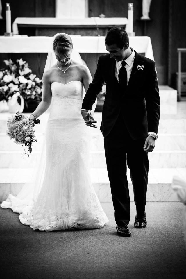 GTKY: My dress was perfect for me, nice and simple and best of all on sale at David's Bridal! It was a pretty a line with a chapel length train that had buttons going down the entire back and train. No lace no design on it just nice and simple. Still have it in storage and not sure what to do with it yet.