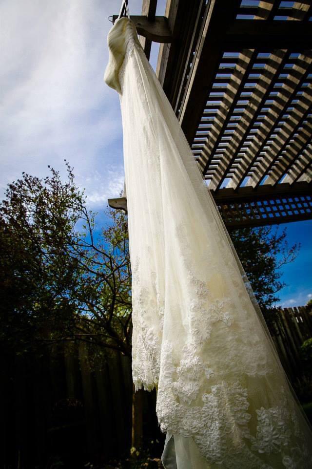I can honestly say I was a very easy going bride, however the whole dress experience was THE WORST! Ended up with a coupon for $500 off a dress, which was amazing but the bridal shop was terrible to deal with. I purchased the dress a year in advance and they only managed to get it in 8 weeks before my wedding. Then they had it another 6 weeks for alterations and when I went to pick it up they hadn't even started the alterations! As I was sitting in the lobby waiting to pick my completed dress up, I watched the seamstress take it out of the bag and run to the back to start altering it! After waiting over an hour I finally got the courage to tell the shop owner how upset I was and she started yelling at me and told me to stop complaining and asked me what I wanted her to do about it. I ended up asking for all my money back for alterations, which was like pulling teeth and left the store with my dress bawling my eyes out! Got the dress home and took it out of the bag and they hadn't even completed the work. The night before my wedding my mother and I had to stay up sewing it and neither of us have any talent in that area lol. Then the day of my wedding, my photographer (who was actually super awesome) started taking pictures of my dress hung up on this really ugly elephant painting in the hotel room. I asked why she didn't hang it up in from of the window and she said she didn't have anything to hang it from. So here I am jimmy rigging a spot to hang my dress up with cell phone charge cables and bra straps for my photographer!