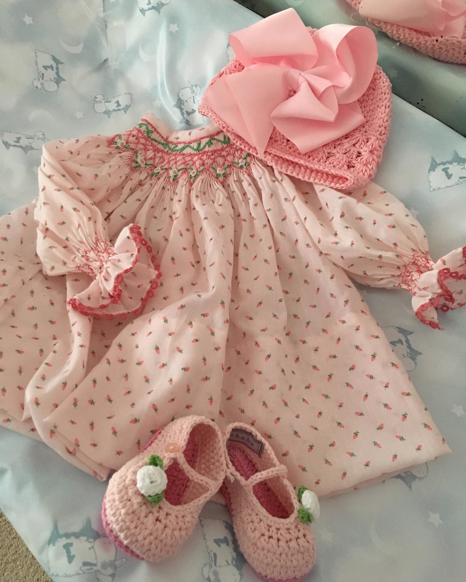 QOTW: my MIL made a quilt for her and smocked a coming home outfit. They are so classic and girlie!! I bought booties and a hat this week to complete it!