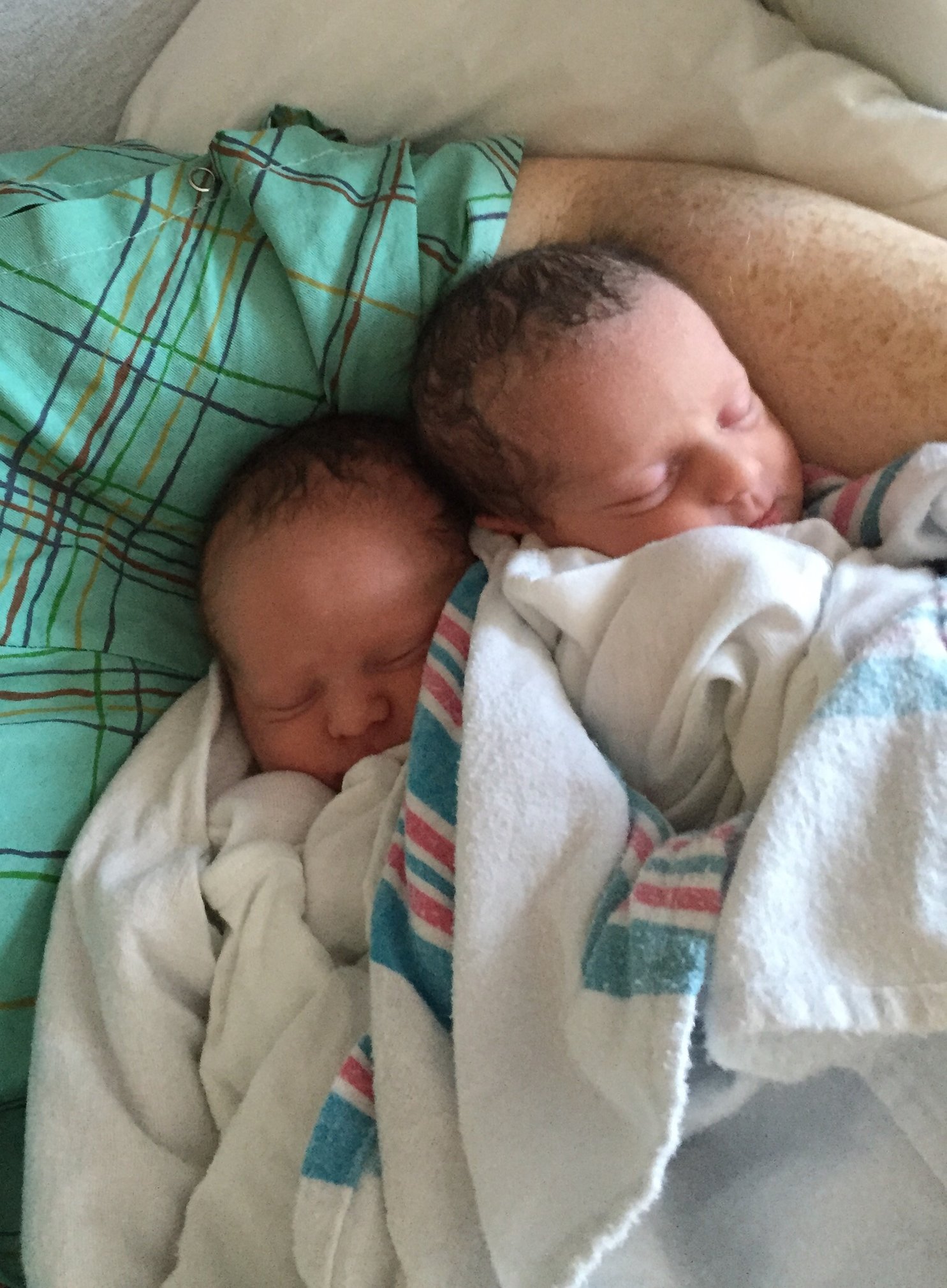 the girls did well. Arianna was a bit of a surprise at 6 lbs 5 oz and 19 inches. Sophia was much smaller at 4 lb 15oz and 18 inches. No NICU time needed. Eating formula but having trouble breastfeeding.