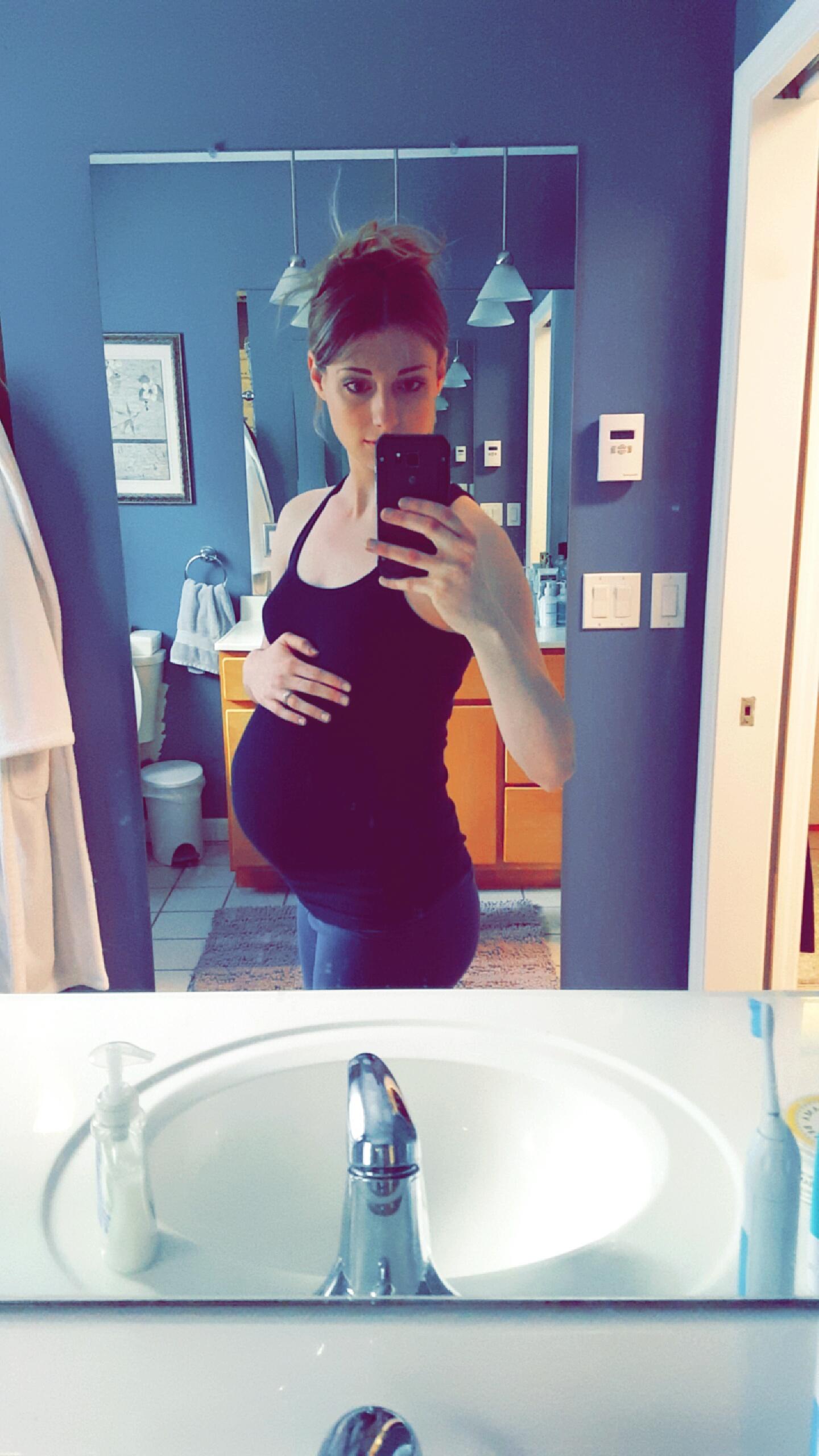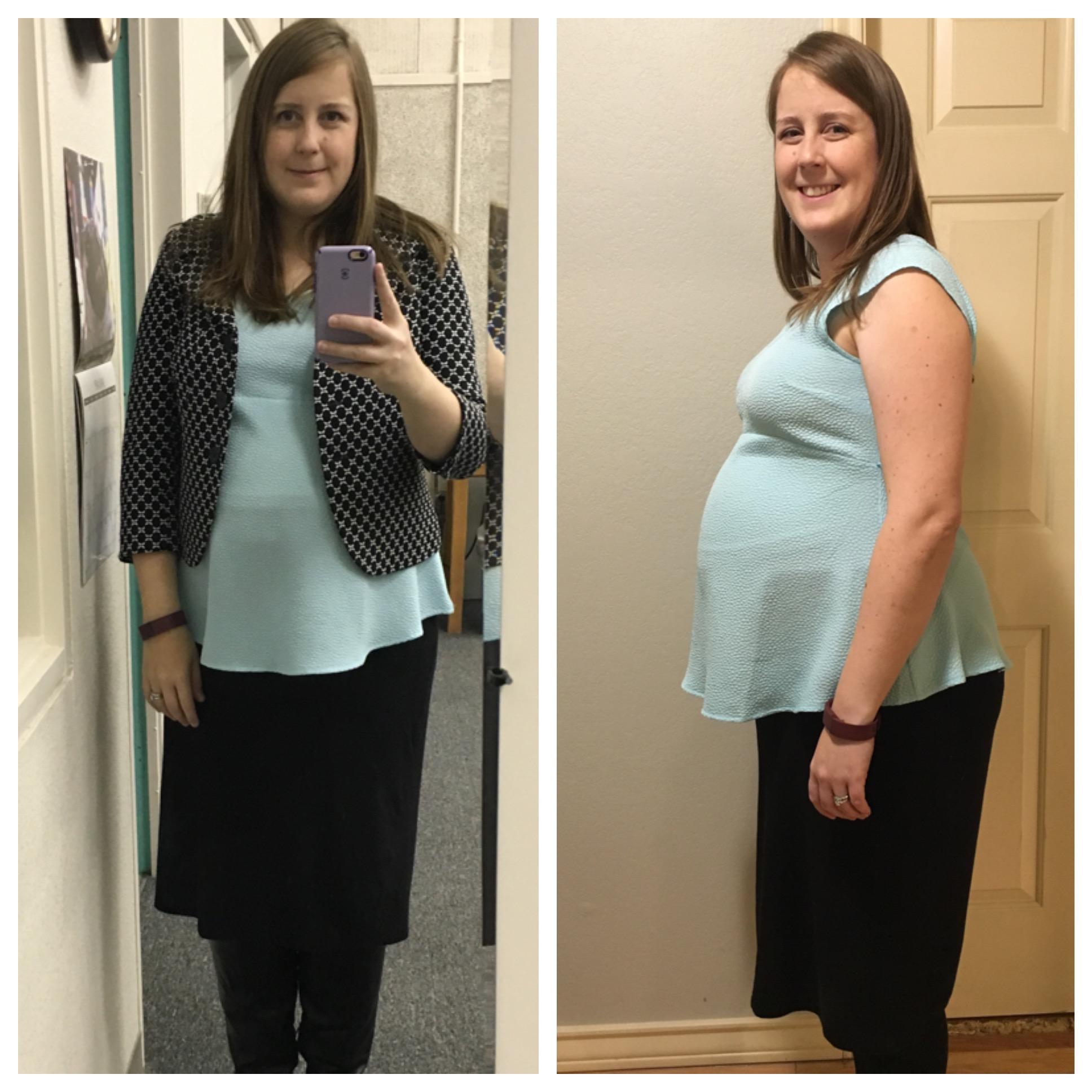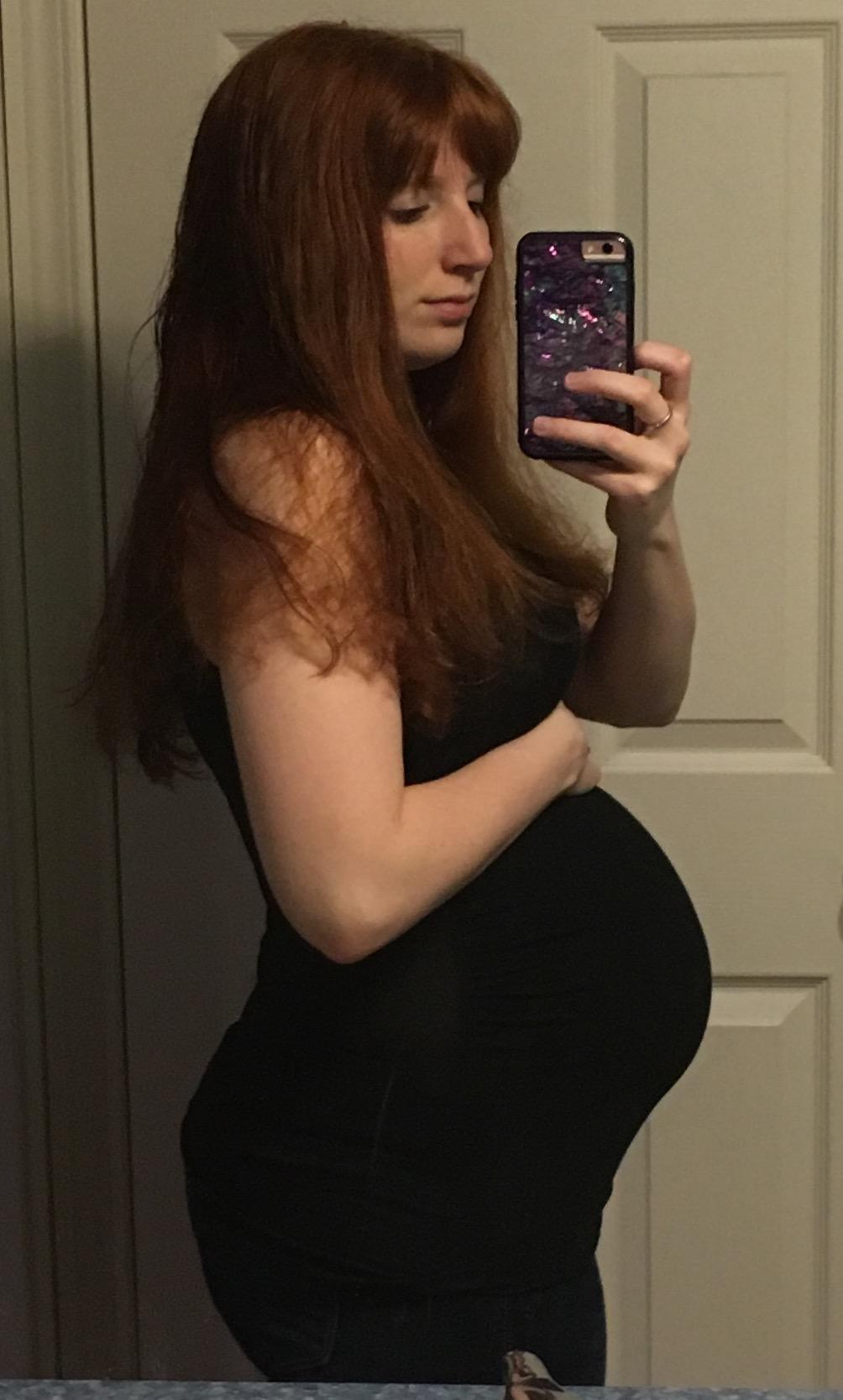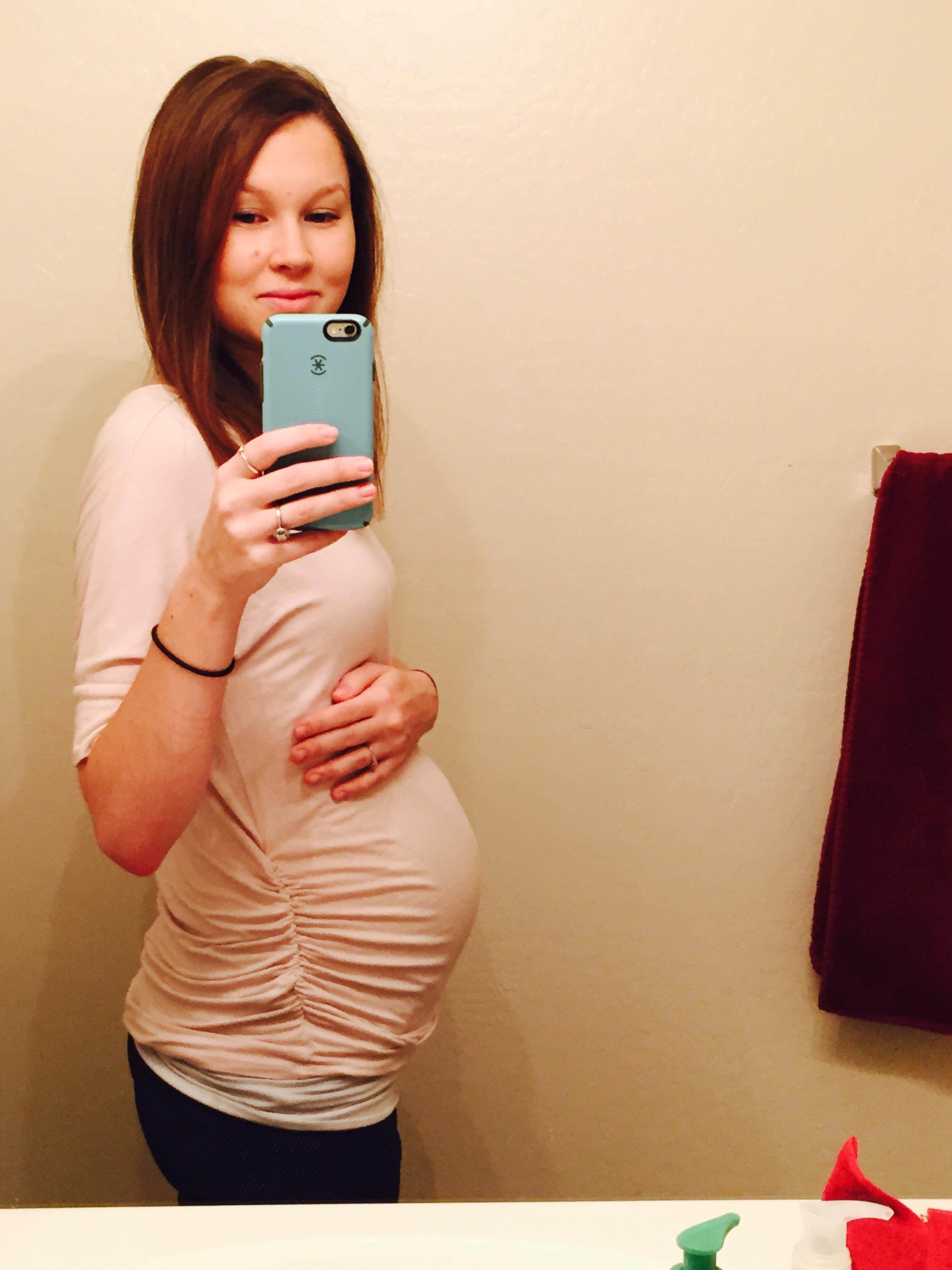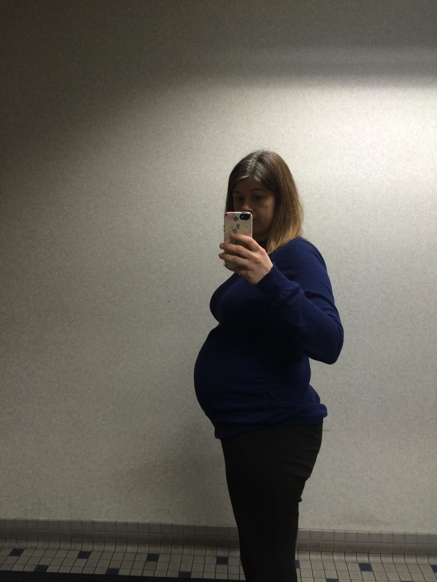 Luckily I snapped a few pics yesterday at 28+4, because I overslept my alarm by an hour this morning and totally forgot about HDBD til I got to work! My butt looks weirdly big and lumpy in this pic but I'm gonna blame that on the angle or something. I don't think it looks like that IRL! (At least, I hope it doesn't!)