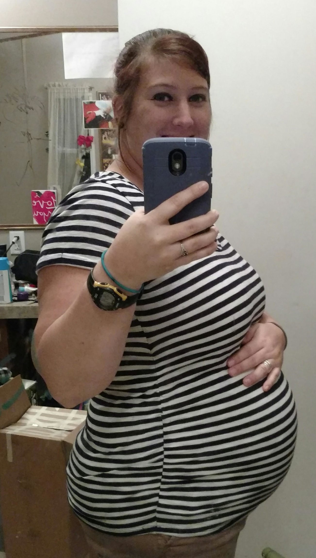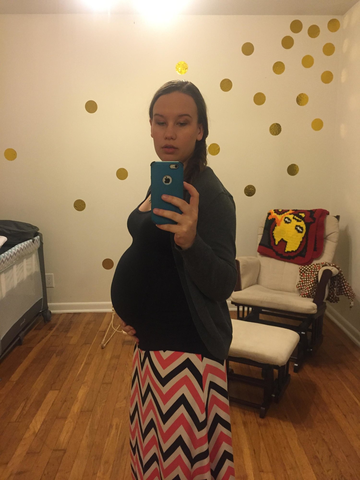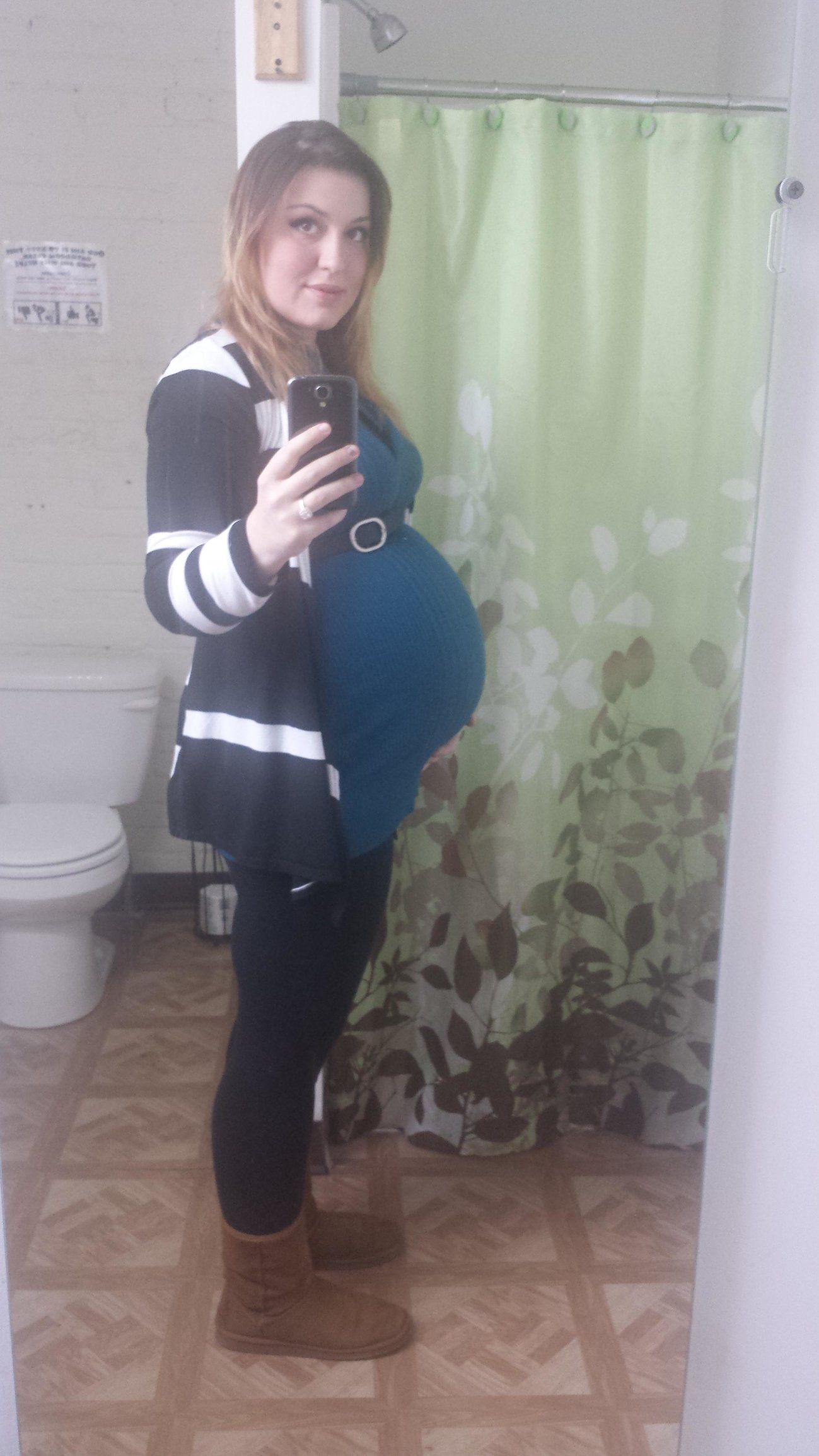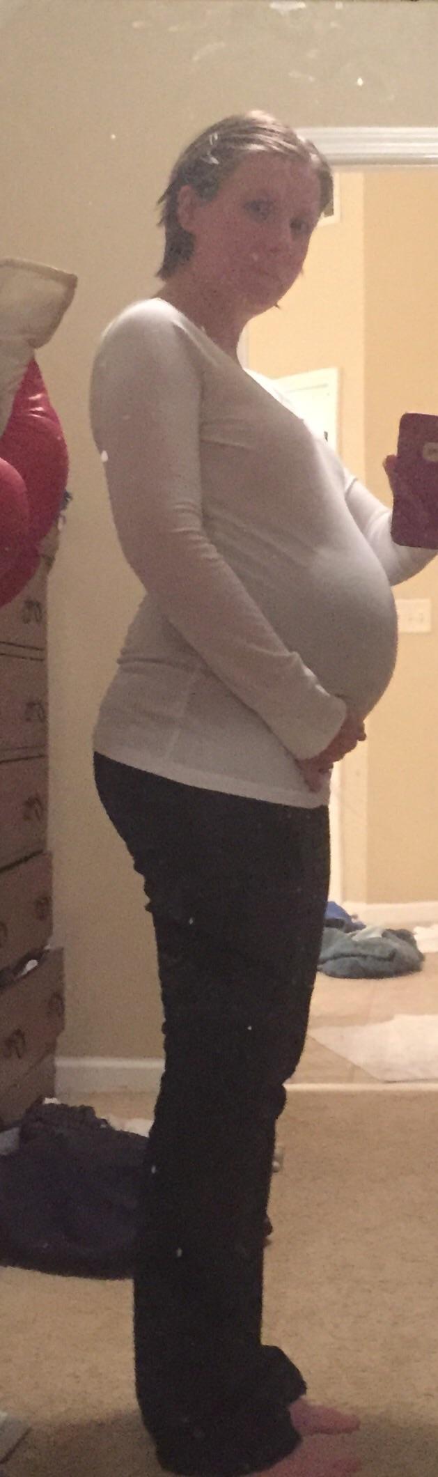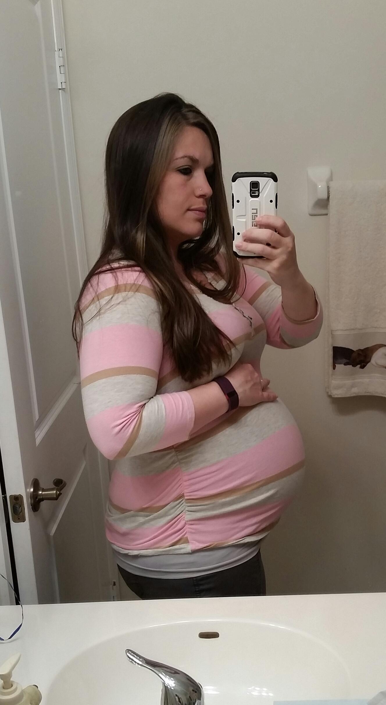 Luckily I snapped a few pics yesterday at 28+4, because I overslept my alarm by an hour this morning and totally forgot about HDBD til I got to work! My butt looks weirdly big and lumpy in this pic but I'm gonna blame that on the angle or something. I don't think it looks like that IRL! (At least, I hope it doesn't!)