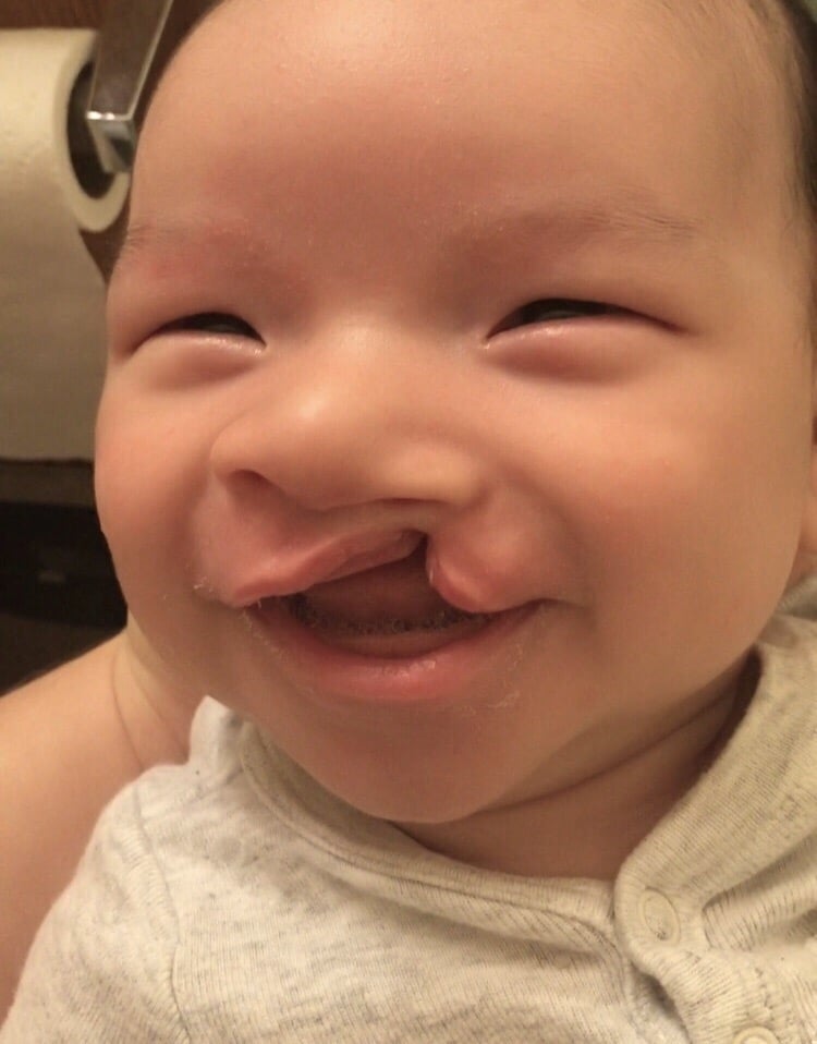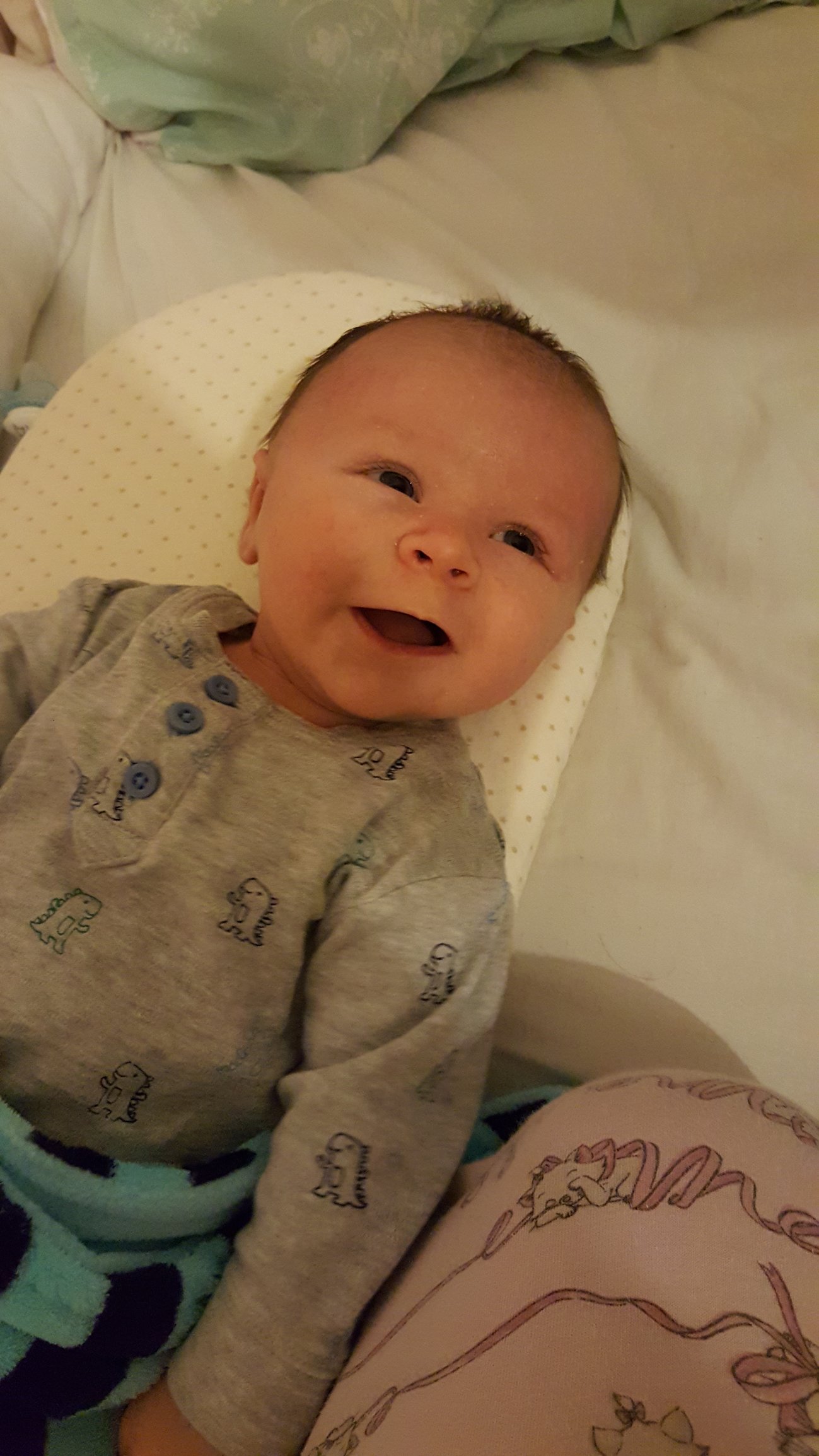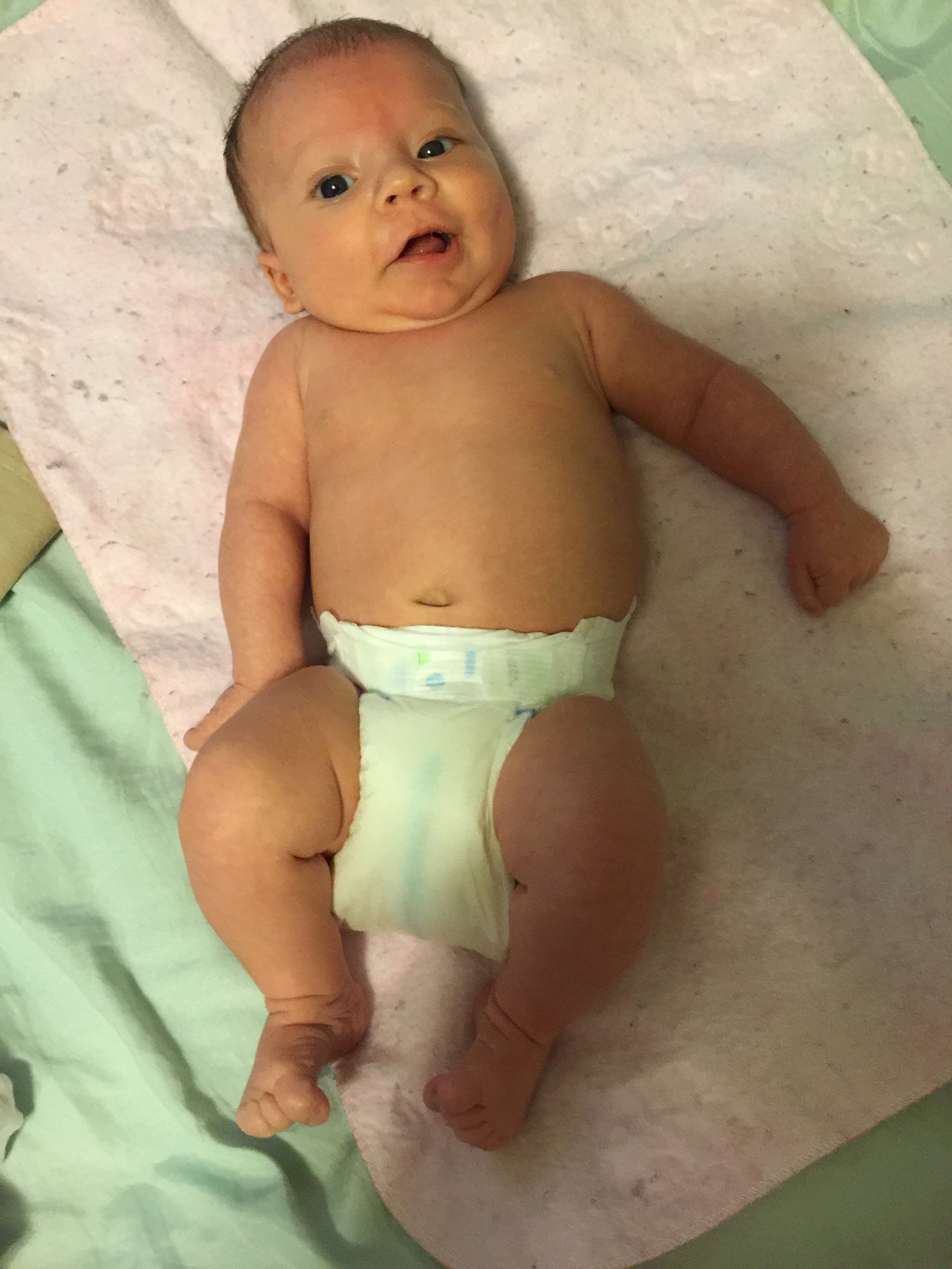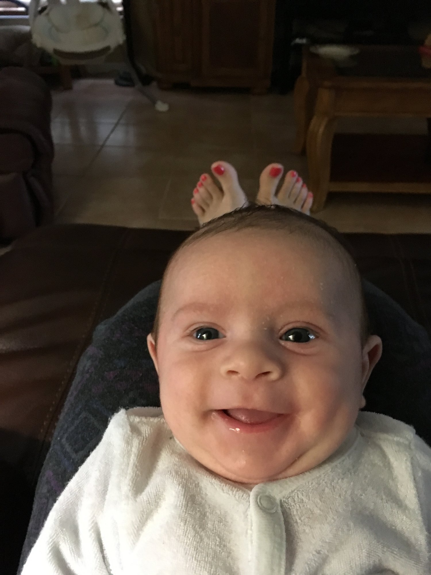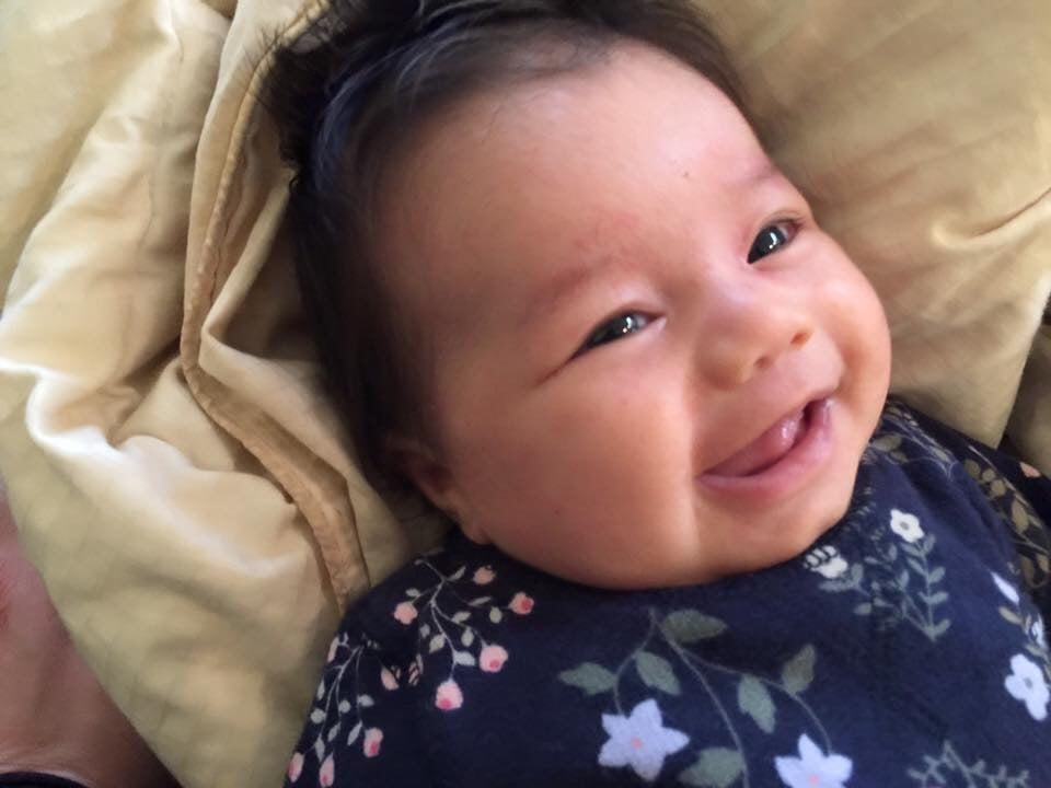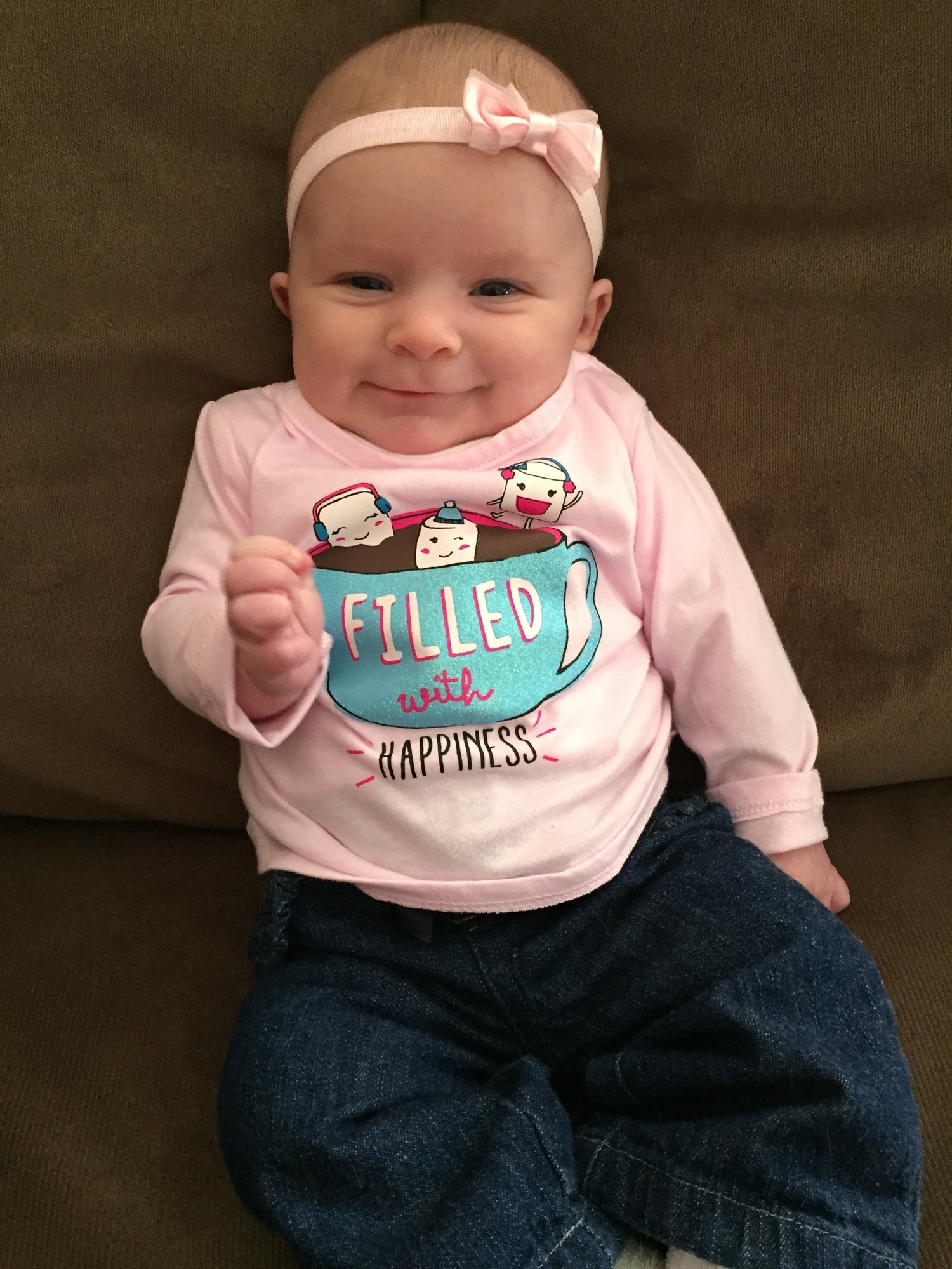 Riley doesn't really smile very much yet but we have gotten these so far. She is always scowling so daddy was gonna make a sad face with her and she ended up cracking a smile instead!