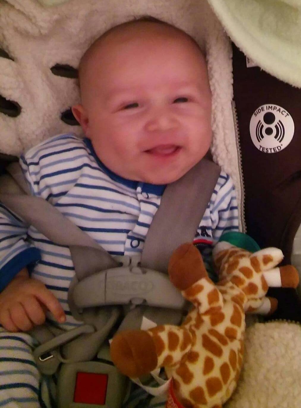 Adorable obviously!! But I really hope you'll take time to fix these twisted seat belts to make your car seat as safe as possible. (I'm going to assume this picture was taken as you were getting him out and that you'd never leave his actual belt so loose)