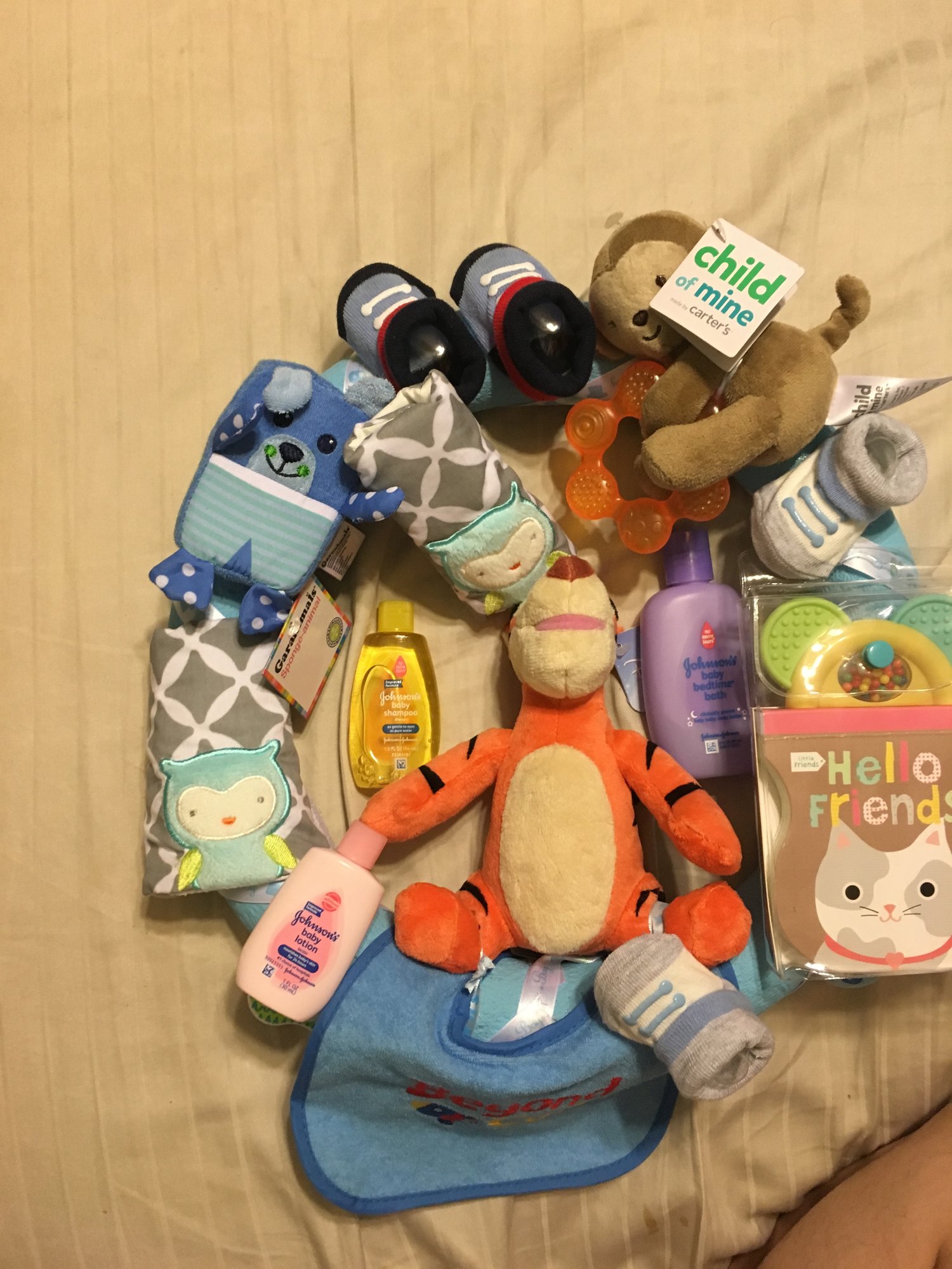 She essentially got LO a bunch of random junk from Walmart, and hot glued it to a wreath... None of it is practical, and if she had bothered to even look at the f****** registry she would know that "I" am allergic to the soaps and lotions she bought for LO, and that we have PLENTY of toys already. Not that I can use most of what she gave us anyway, because there is hot glue stuck all over EVERYTHING.