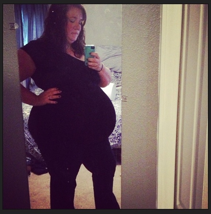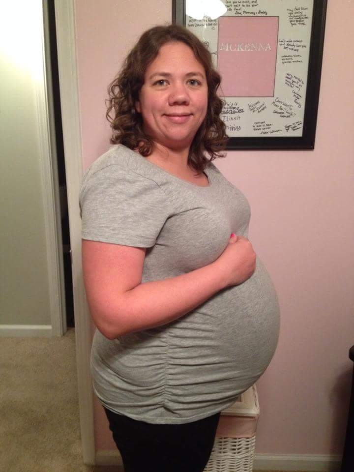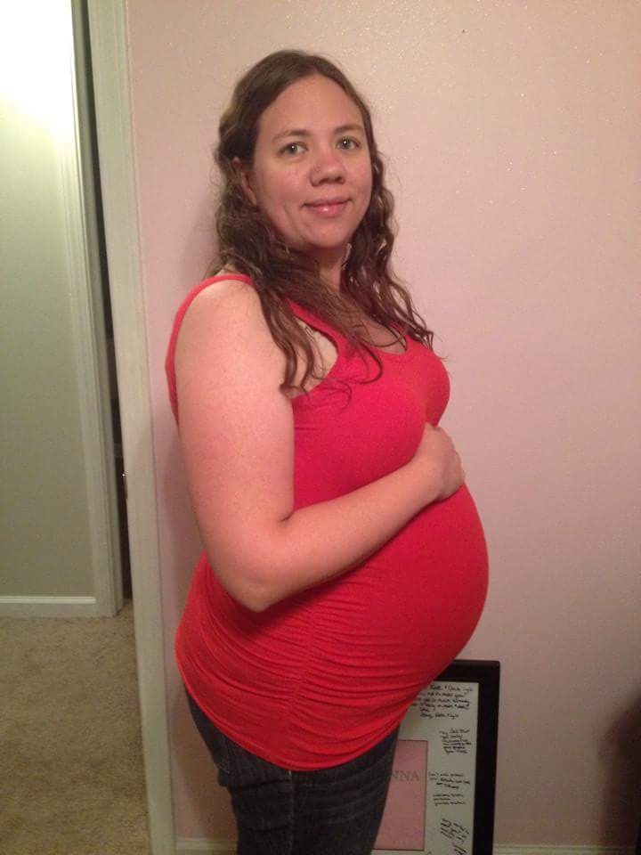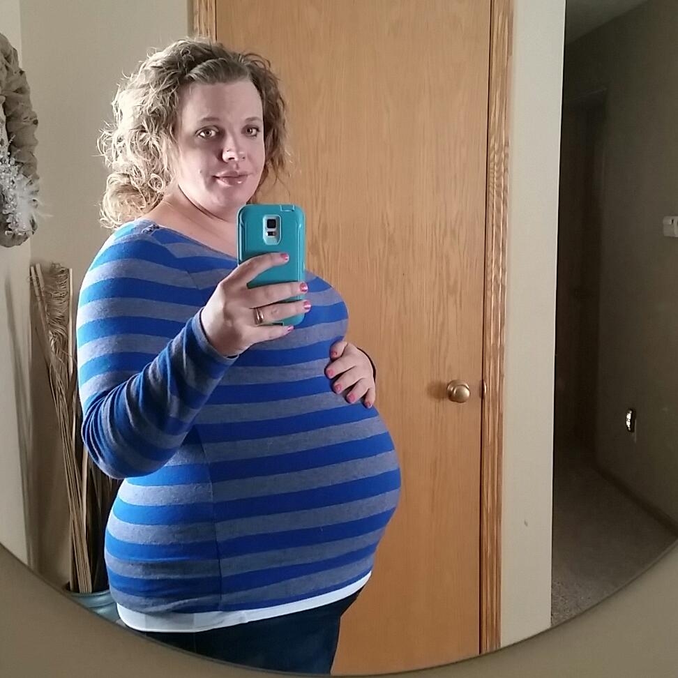 I was a 16/18 before I got pregnant for DD. These are photos of me at 32 week, 34, and 38 weeks.