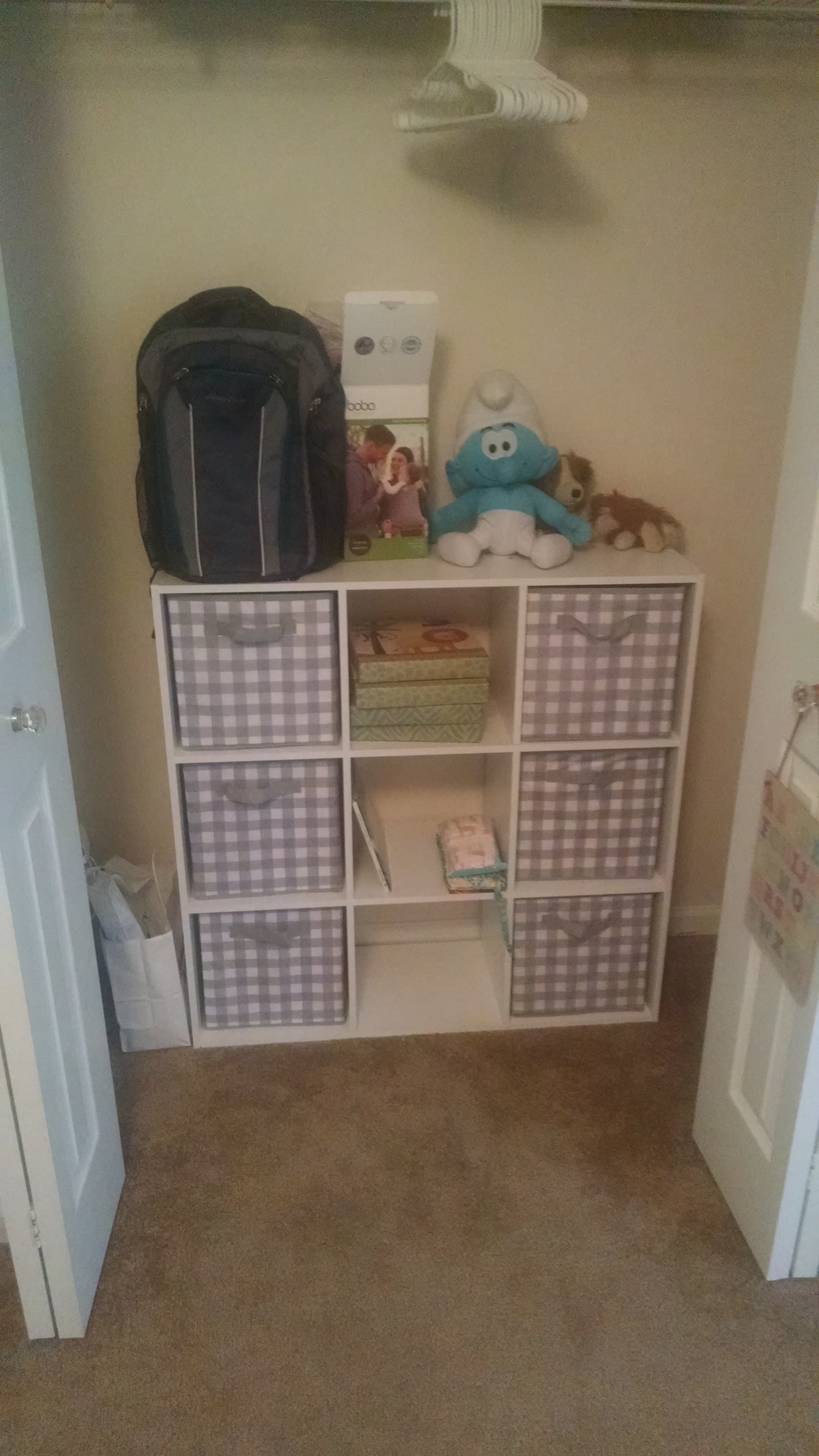 We have the furniture, now we just need to decorate more we are going to get two more baskets for the cubbies, but not until baby is born and we know the sex. The middle cubby will be for books