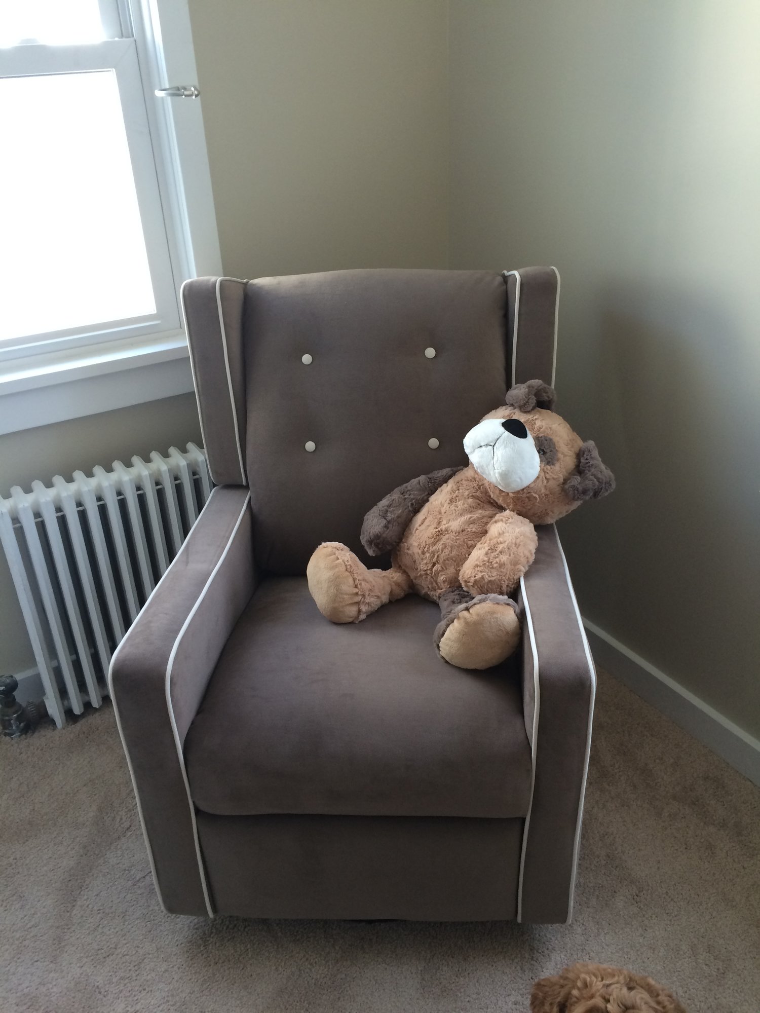 We are just getting started in the last few weeks. I felt really behind. We had purchased our glider off of Amazon and when it arrived i was disappointed it was so yellow. We wanted to play it by ear so tonight the furniture was delivered and it's "antique white" meaning it has some grey in the white almost distressed. Seeing the furniture made the chair look even more yellow. Thankfully, amazon had free returns and we don't even have to package it up.