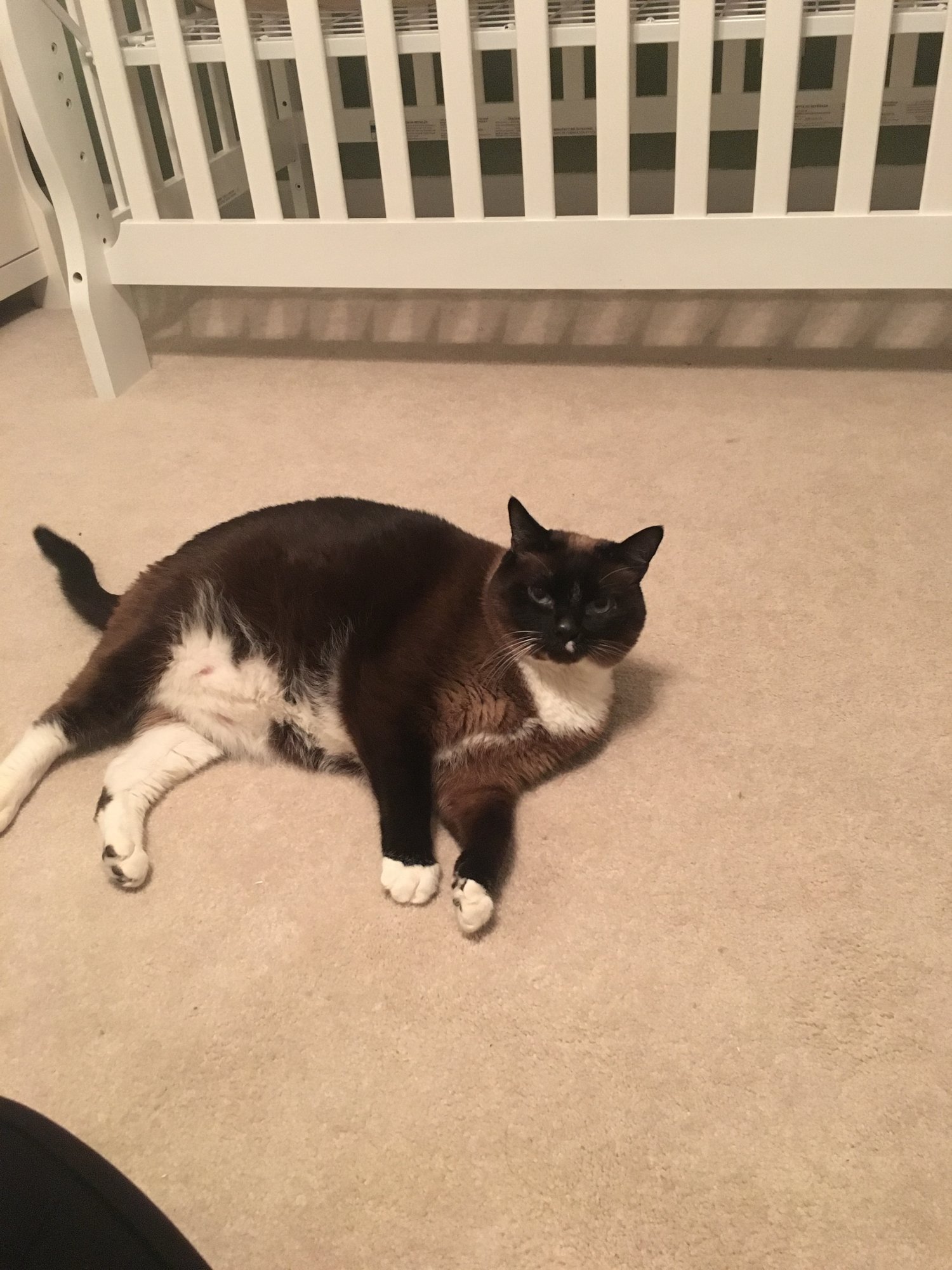 Because I'm a lame sauce today and don't feel like doing anything, I have decided to check in with a picture of my fat cat. Lol. I don't think he's too thrilled we've taken his hiding spot and put a crib there, but he's making sure to love on the belly every morning.