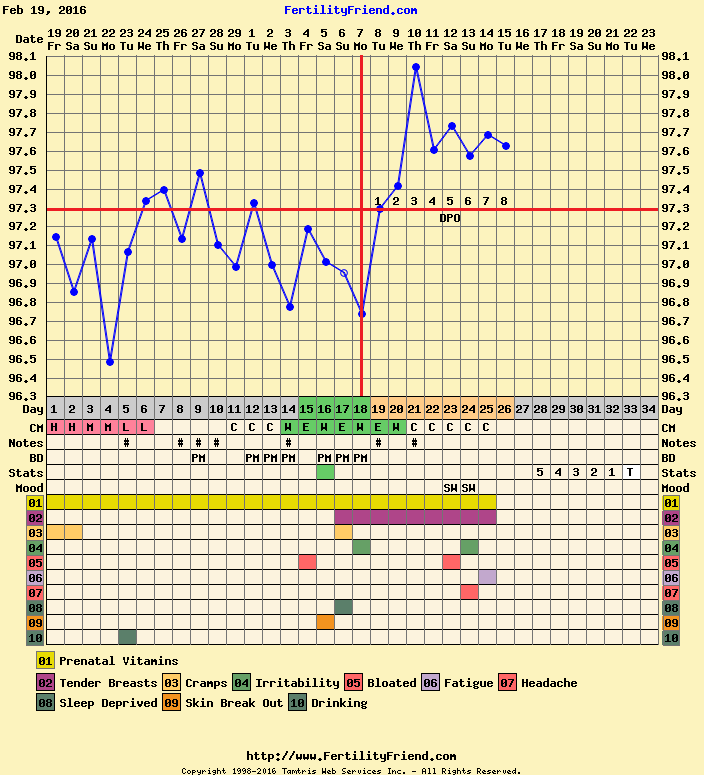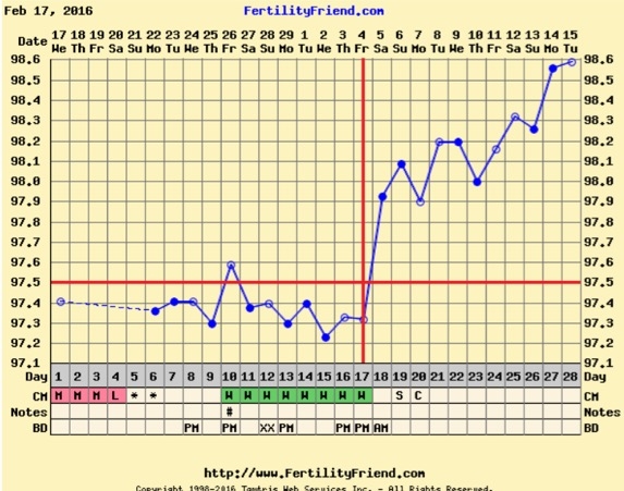 R/R/CS: Temp shot back up today. I thought vaginally temping was going to make my chart make more sense lol. Well at least I have remained well above the cover line just fluctuating up and down a bit. I think taking a POAS break today was well needed. I am proud I have been strong about it. Yesterday was really rough. I broke down in tears twice. I'm not sure why exactly but I have realized I have really high hopes for this cycle and I think the idea of AF coming is really depressing me. I know I haven't been trying that long but its so hard not to get your hopes up. I am trying to be more relaxed today and not let my emotions get the better of me.