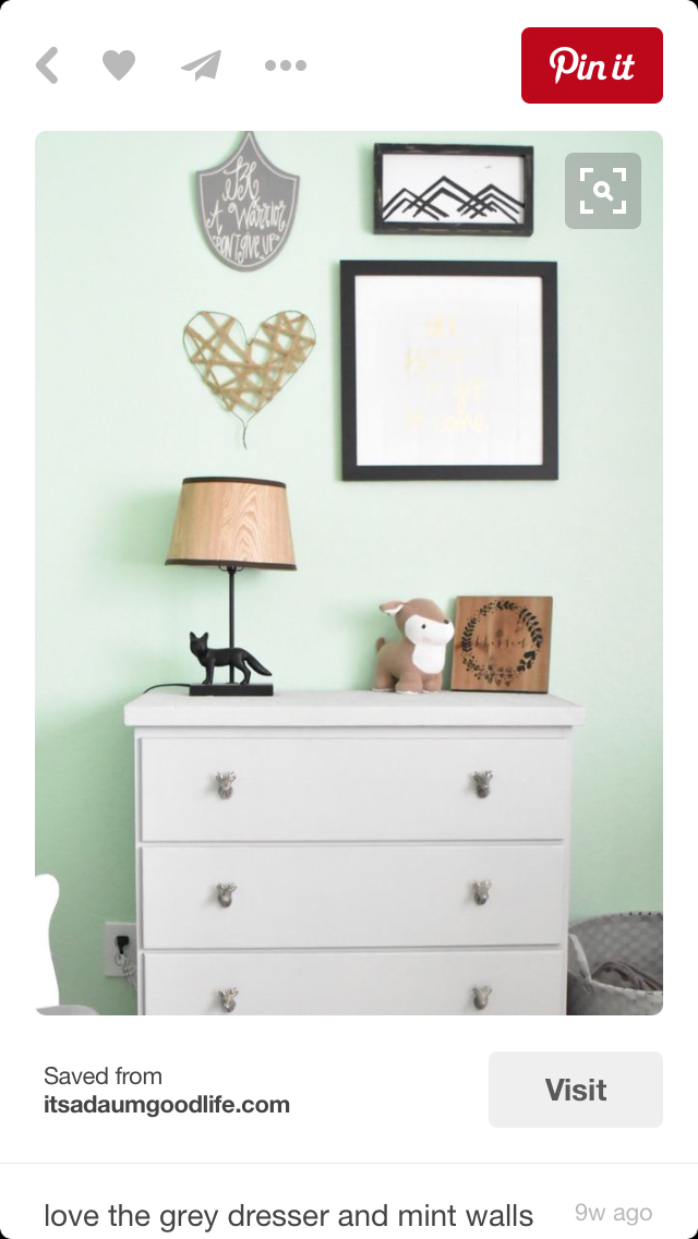 Ladies - I'm in a decorating mood. Help me pick a paint color for baby's room. We're team green and I'm considering some sort of animal themed room. The furniture is a medium brown.