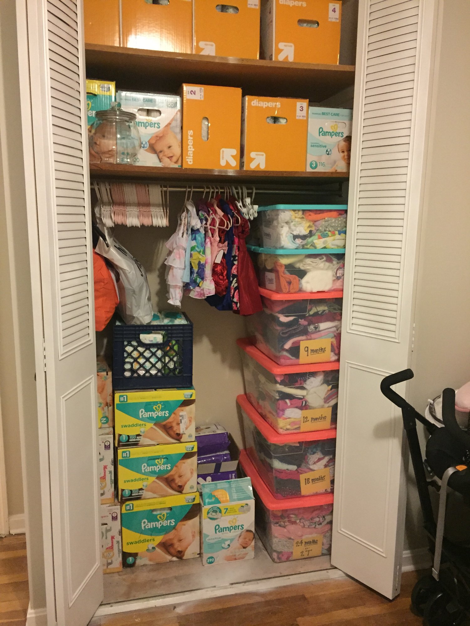 So jealous of your closet @cmjenkies ! I only have two boxes of diapers and several handme downs. Everyone around me has bigger kids/ no kids/ boys. Sigh.