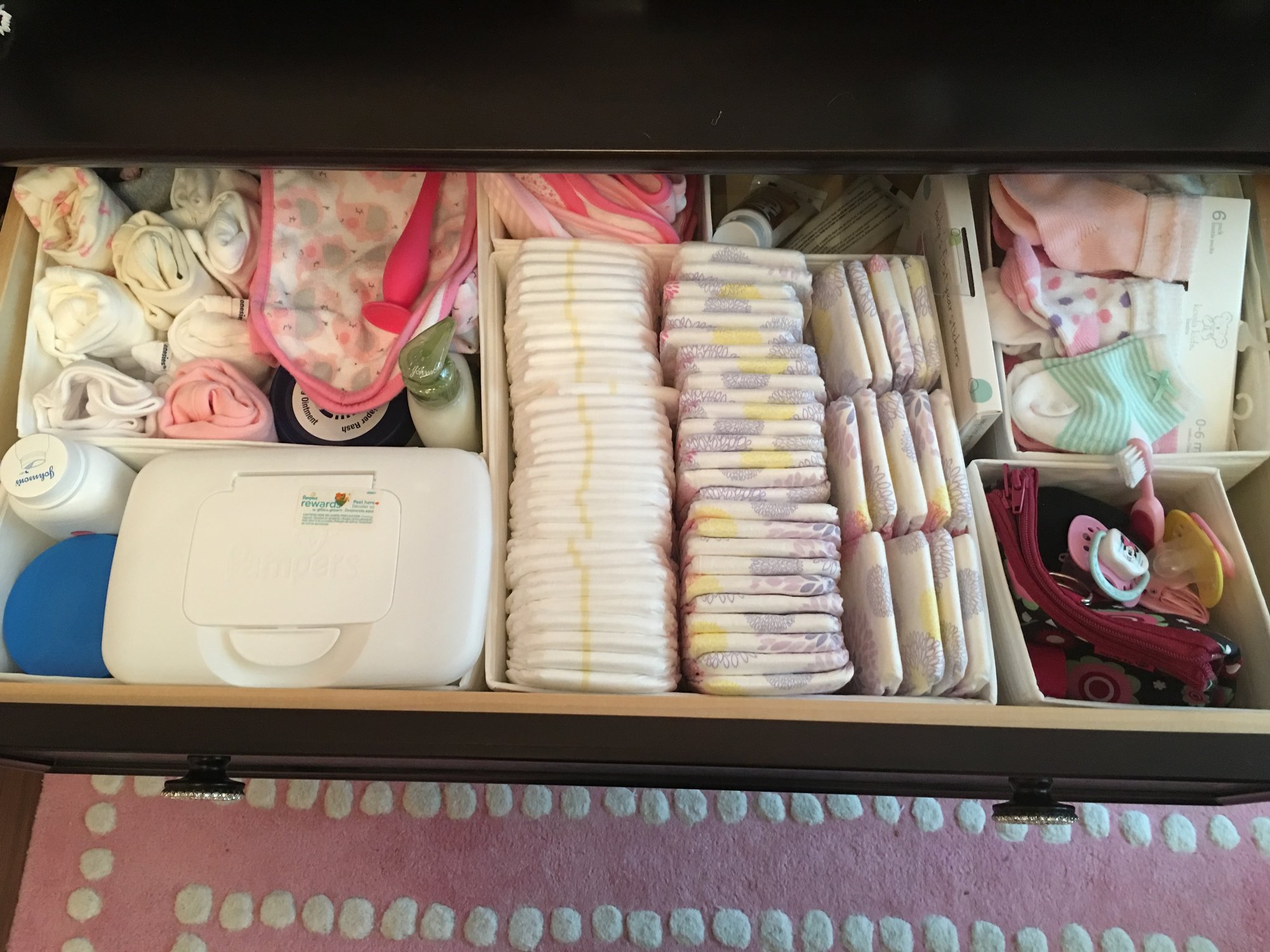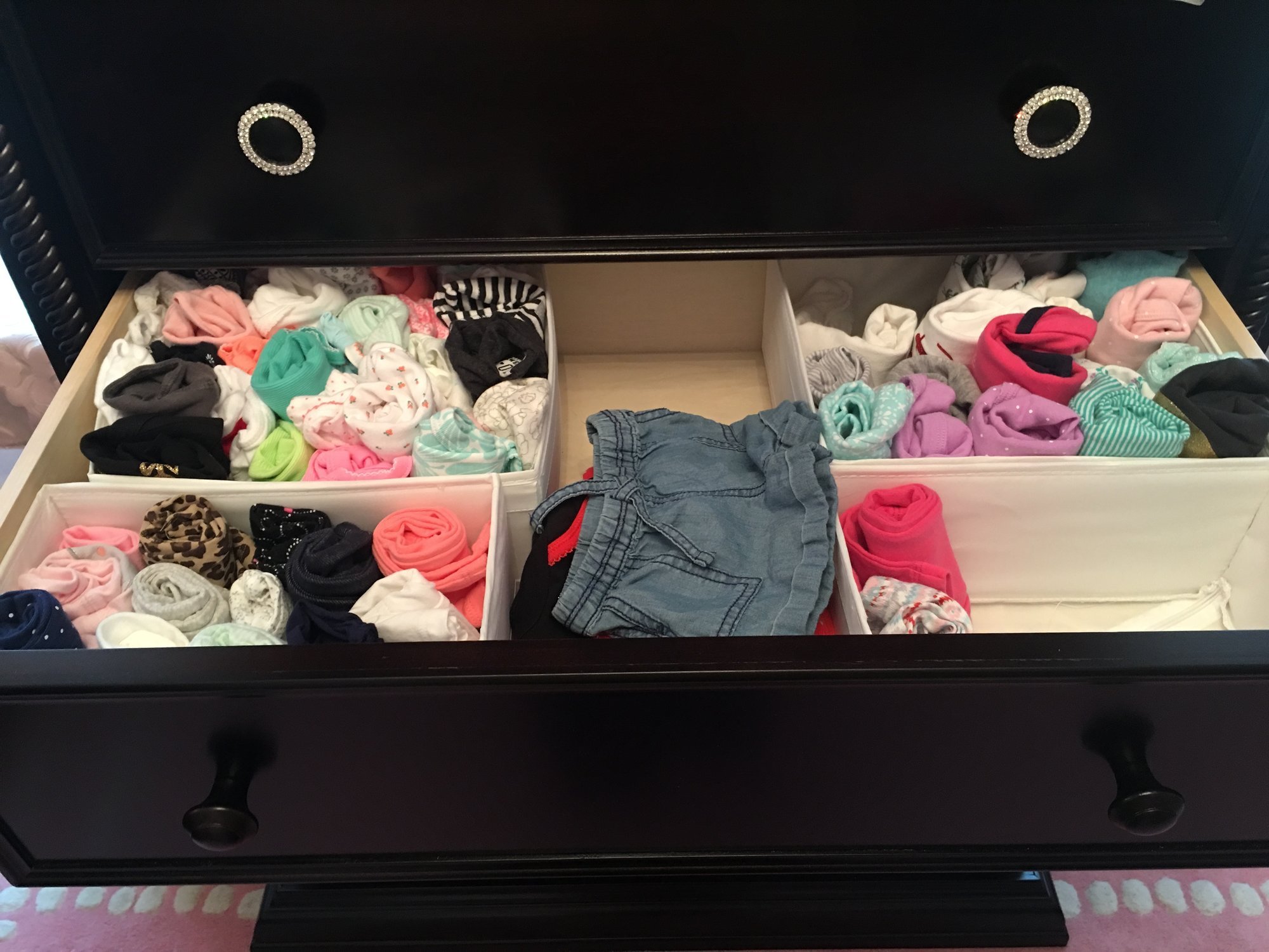 @yodiggity I'm 'fake organized' I think, because I'm a total disaster most of the time. I have my moments though. All of that is 9m-2T except for the top two little boxes that are 3-6 that still need washing. Everything else is stuffed in her dresser.. and once it gets worn, we'll likely go back to living out of laundry baskets.