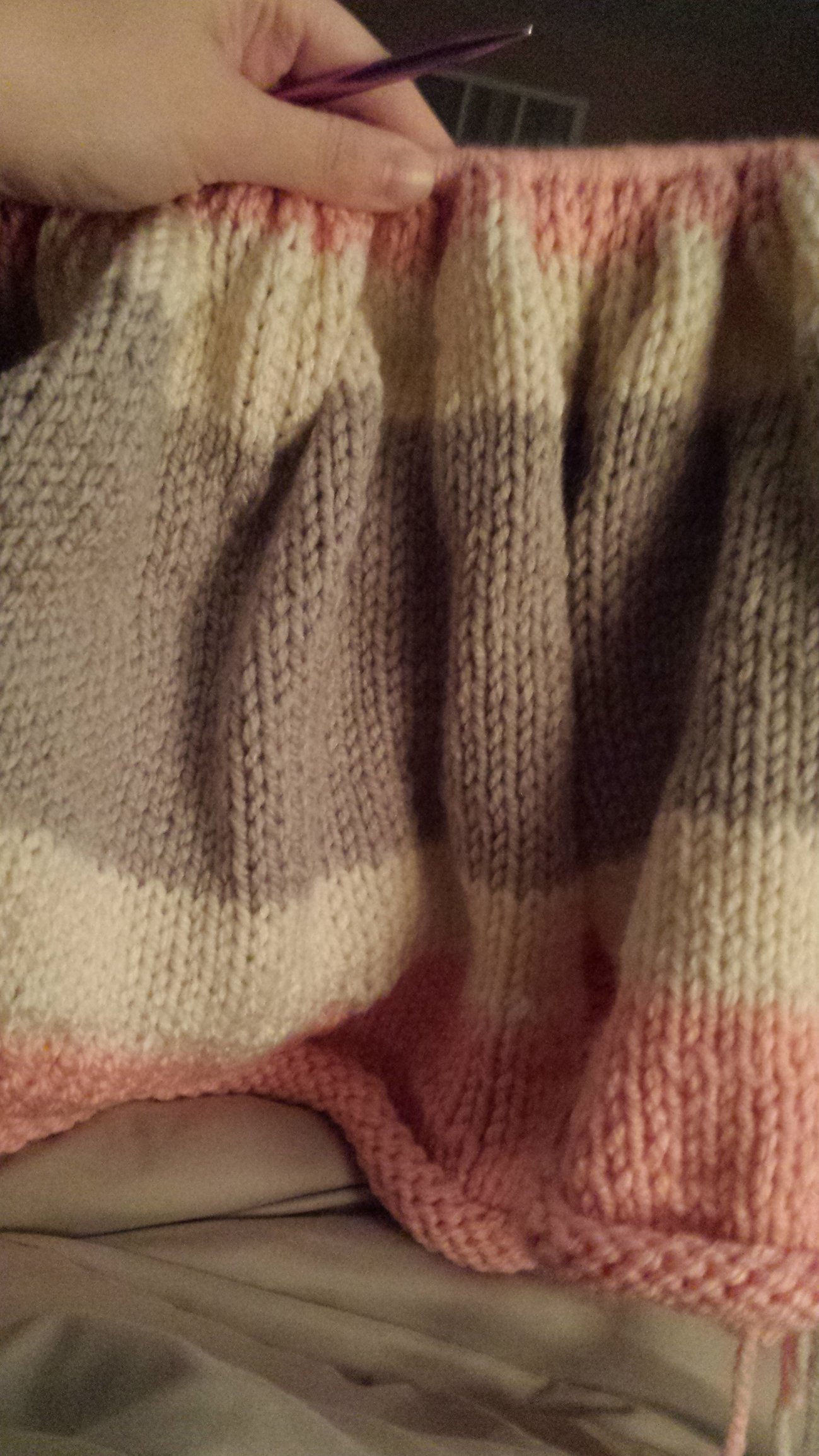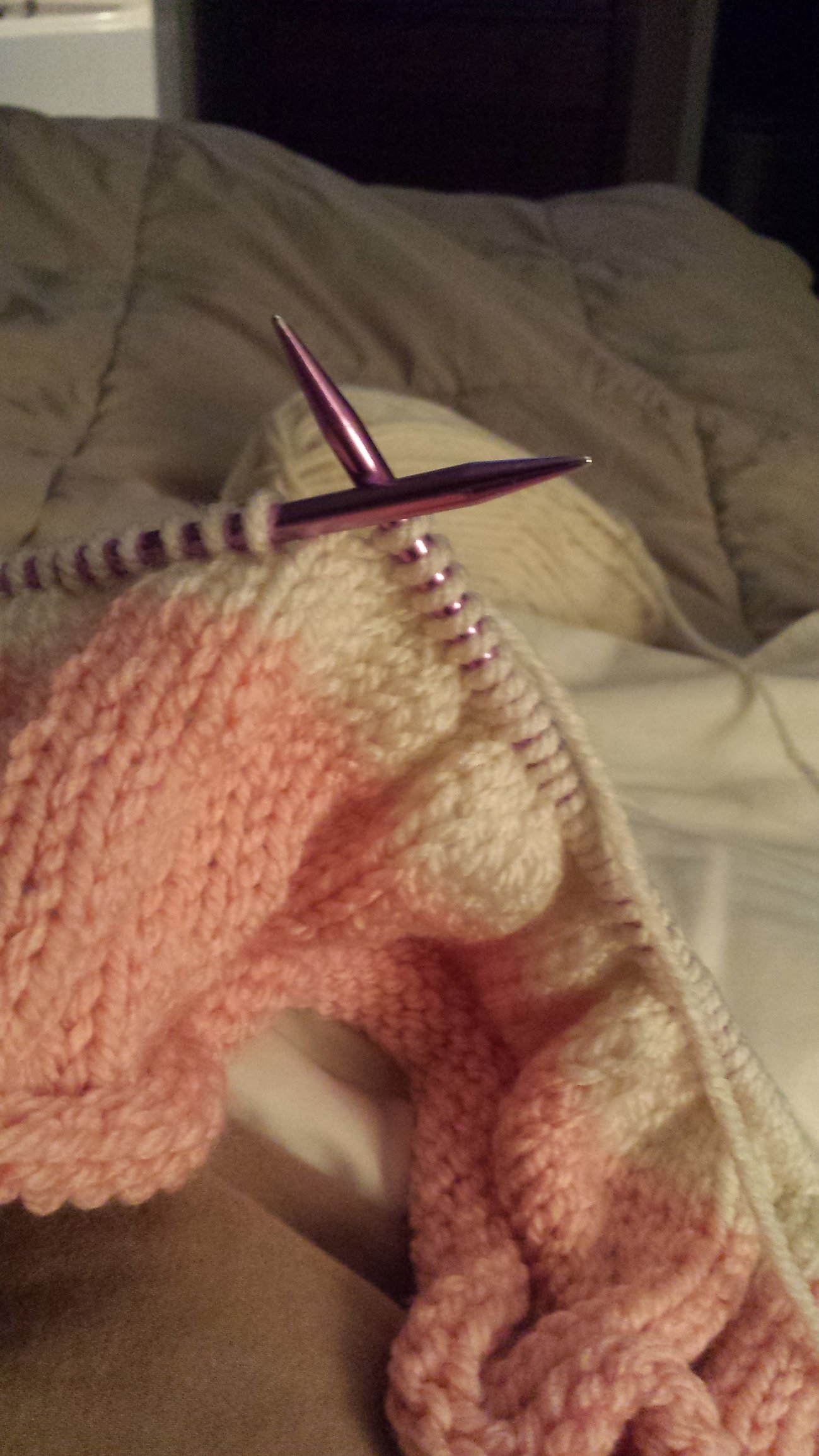 Started my baby blanket yesterday. There's a few flaws that are bugging the crap out of me! The one edge looks so ratty because I'm not good at switching colors. Lol. But I'm happy with it so far