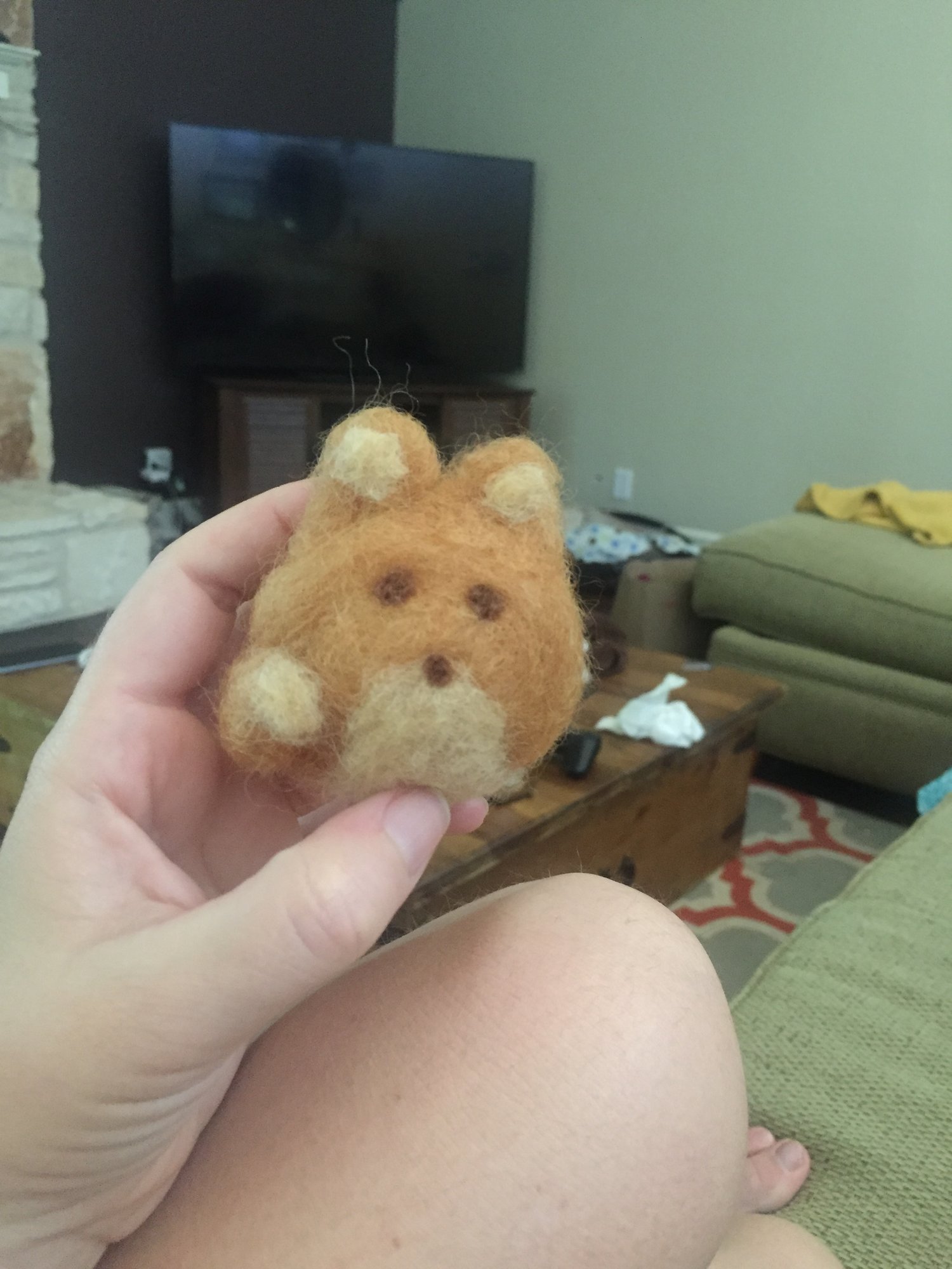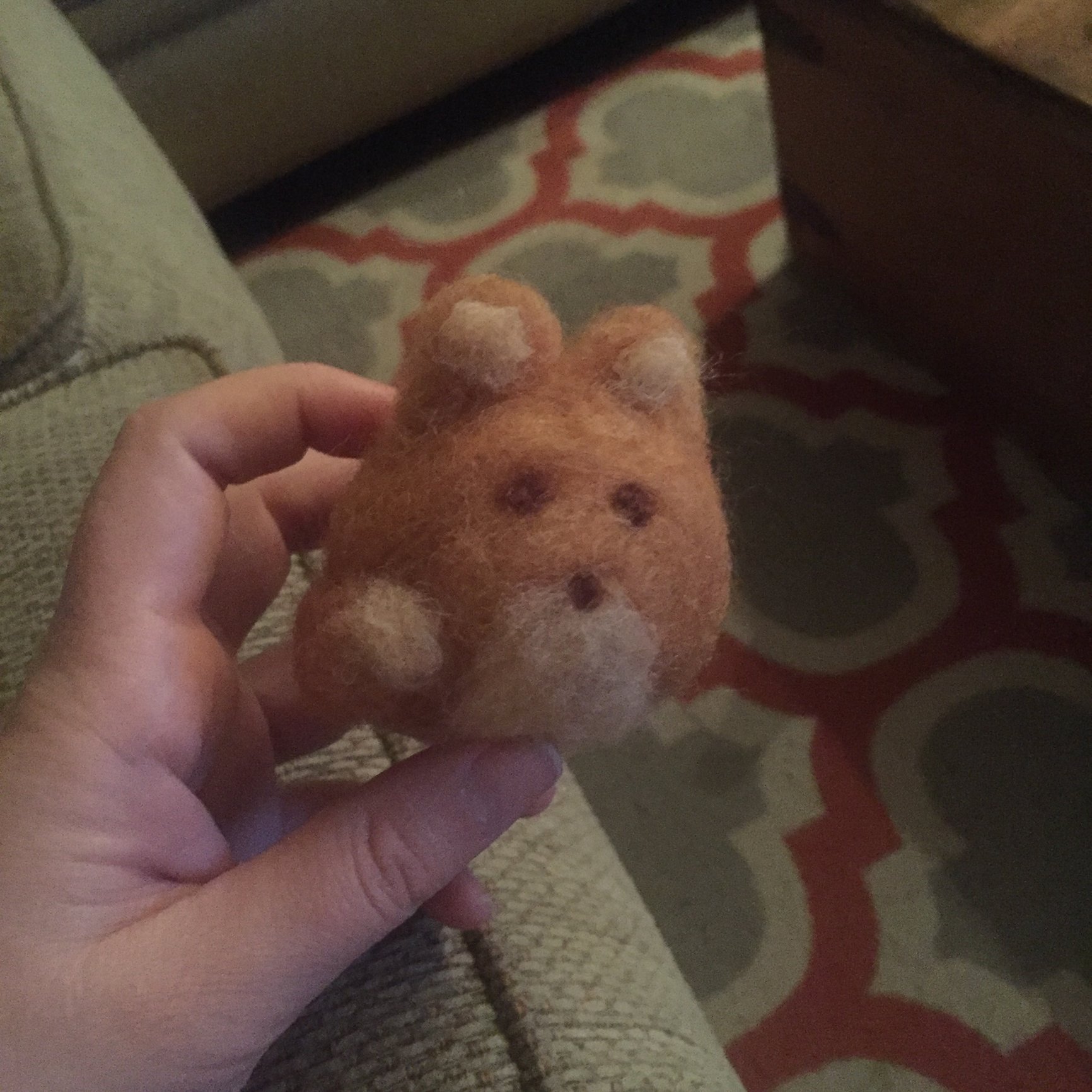 I started needle felting a mobile last night because we decided on woodland nursery theme... This is literally the first thing I've made doing this new craft:) so be kind
