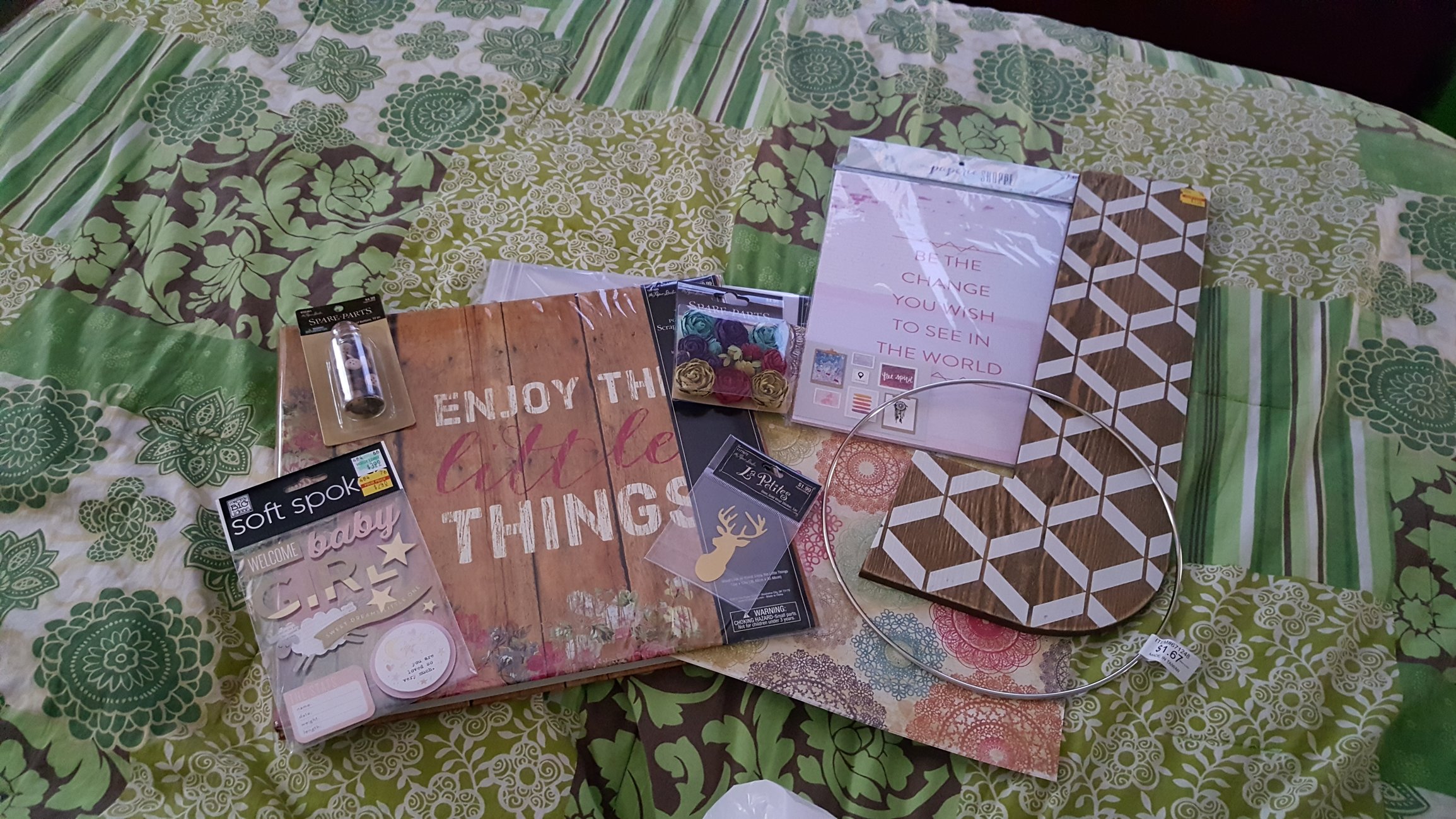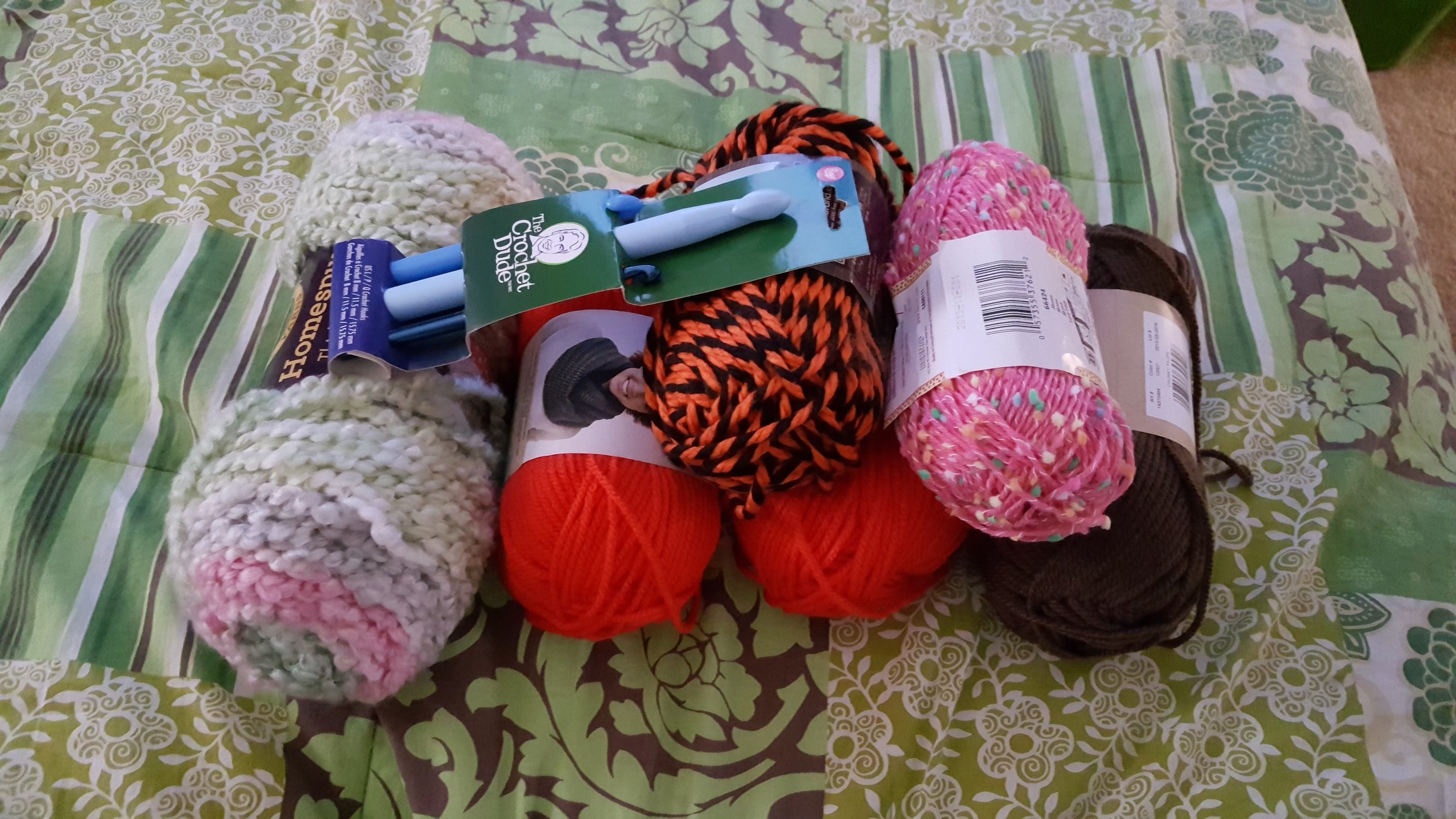 Scrapbooking stuff was 50% off at hobby lobby ! And Joanns had yarn on clearance, an October baby needs a Halloween hat ! Also going to knit some cupcake hats for my girls