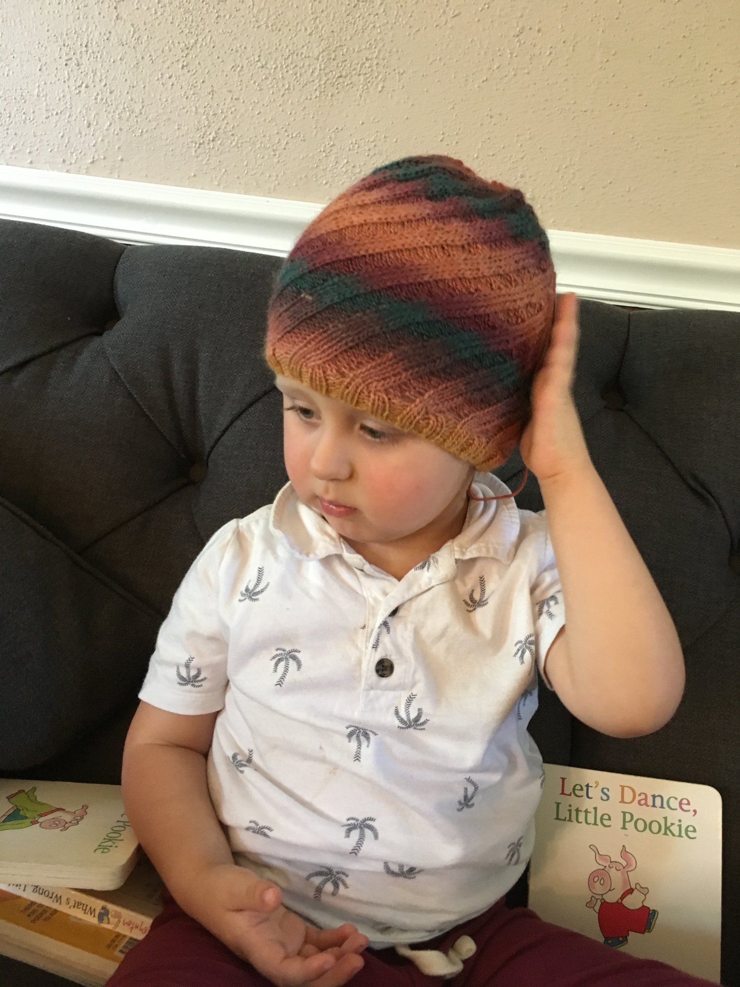 The lighting isn't quite right so the photo doesn't do the colors justice. I'm going to make a matching hat for big brother and one in a different color for me.