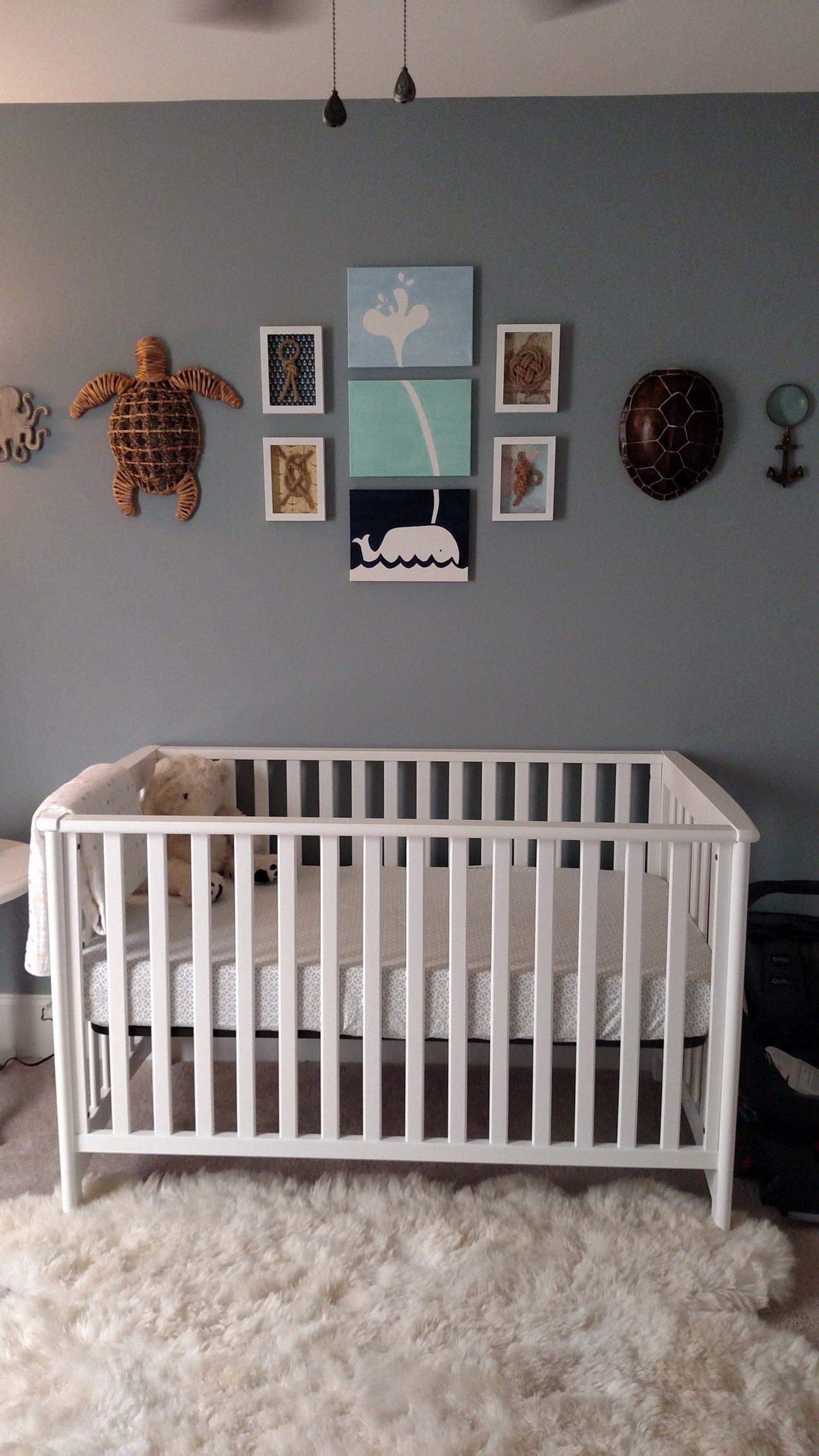 We decided to go with a Nautical/beach theme for the nursery. It's currently DS1's room, so we'll bunk him in with his brother (and do that room a superhero theme) in a few weeks and get started. The nursery is already blue so it's just a matter of putting the crib back together and hanging new decorations.