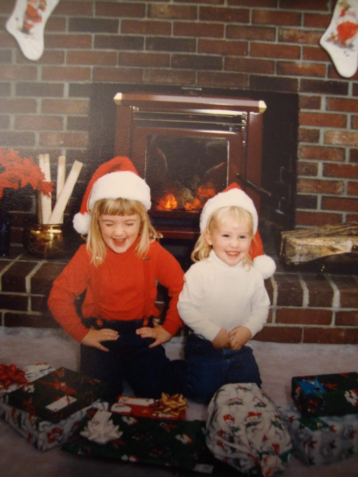 @camichael84 - I scoured FB for an example from the 90s of us growing up. Couldn't find a matching one, but how about coordinating jeans, Santa hats and turtlenecks?? hahahaha, Sister on the left (age 5), me on the right (age 3). I'm sure your girls will bring you years of cheer