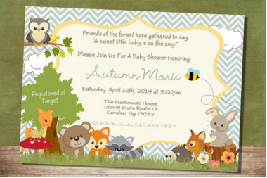 We've chosen a Woodland Theme and have gotten really clever with our wording for our invitations lol. So far we have: