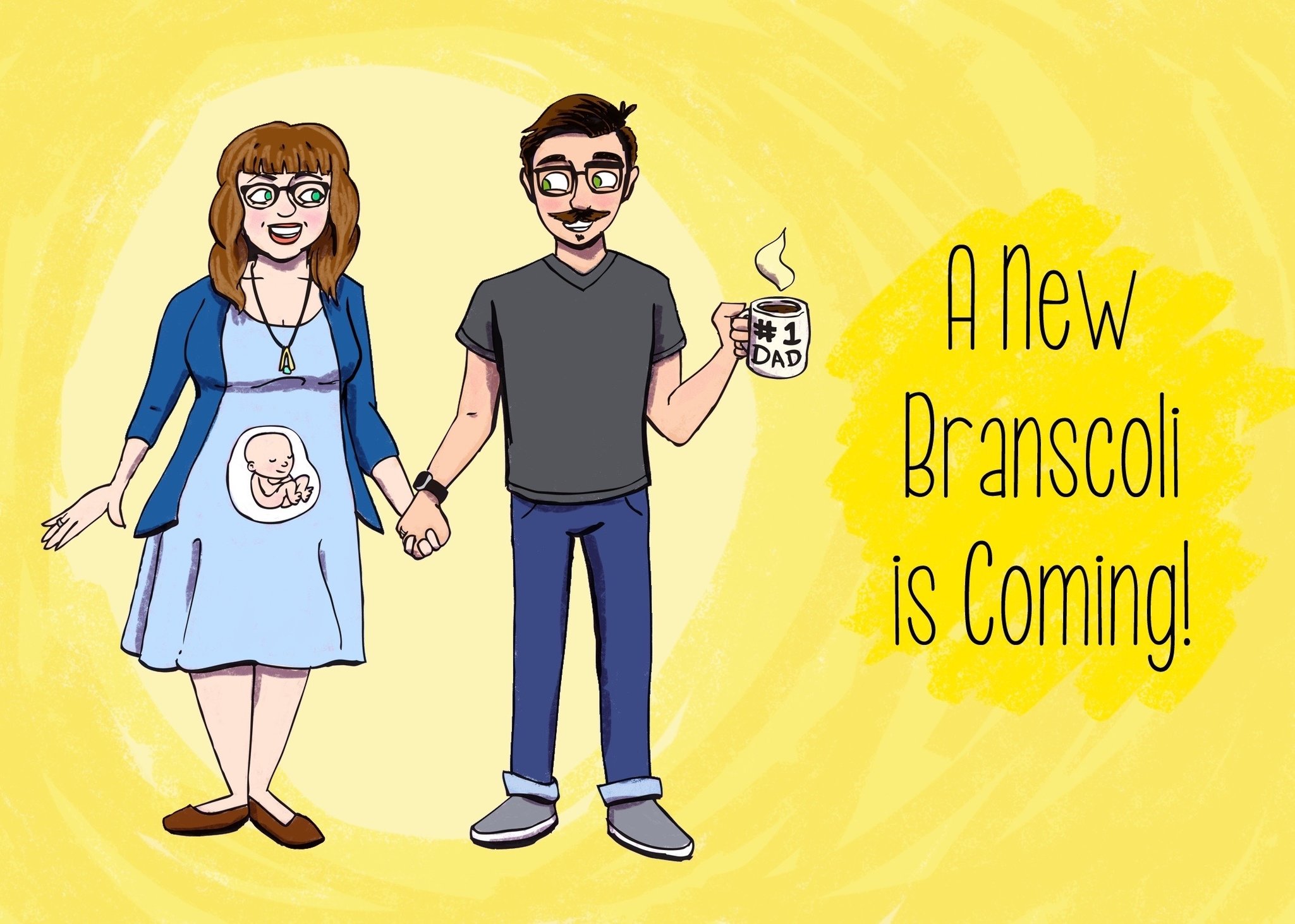 We announced at 9 weeks, on Mother's Day. We had already told all our family members and close friends, so it was more a formality than anything ha. People loved the drawing! My hubs drew it himself. It pays to marry an artist