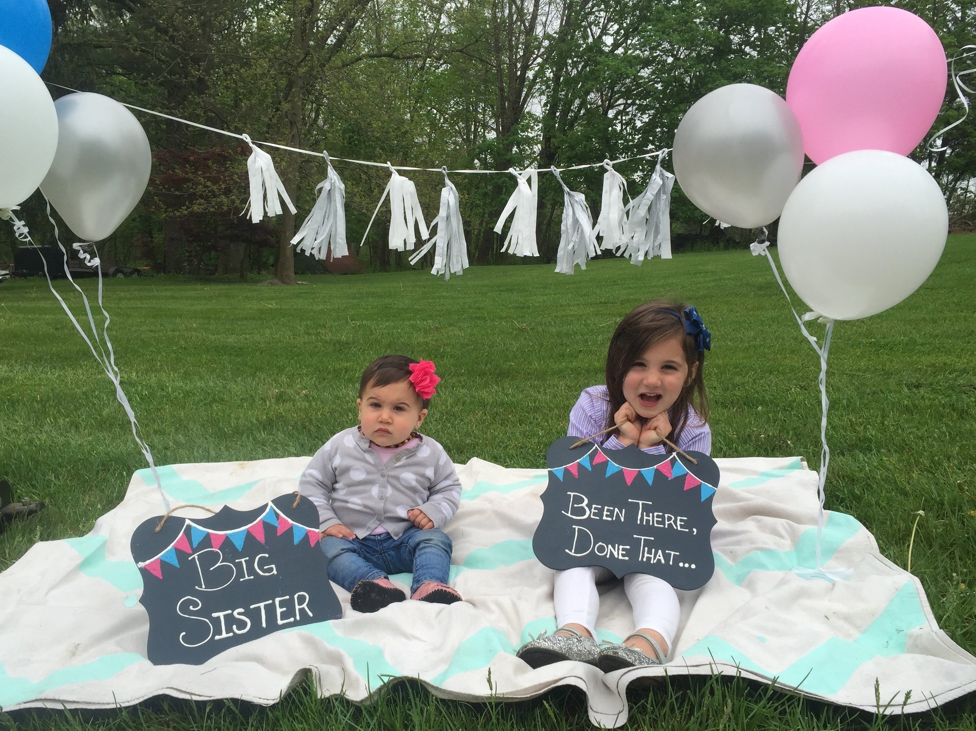 I love all the announcement photos! Pinterest gets me everytime. DH and I decided not to announce this one on social media. Figured those who see us this summer will figure it out. We had DD1 announce her sister at 16 weeks last year I surprised DH with an early gender scan for Valentine's Day so we knew but the picture was already taken. This nugget we told our immediate family for Mother's Day. DD2, who is always happy, was miserable and it was the only day in the past two weeks that it hadn't rained. I'm debating retaking it if we don't end up building an arc and floating away! Pinterest is my weakness!