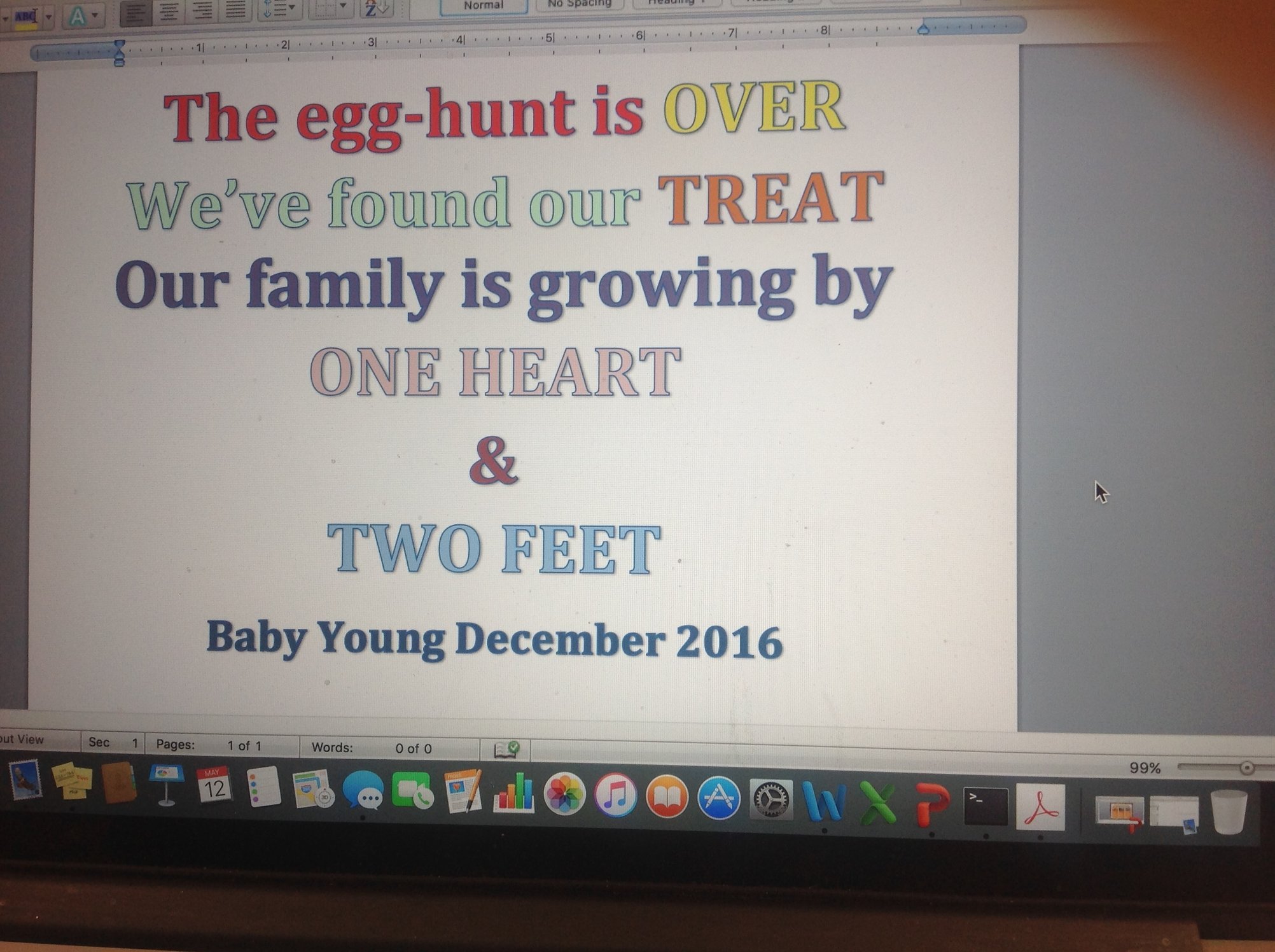 This is what I have so far...haha. (I'm a writer.) I'm probably not going to have an ultrasound when I announce on FB, so I'm trying to come up with cool stuff to fill it in with. Or maybe I'll just leave it like this and have a heartfelt announcement.