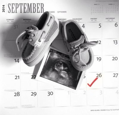 I was thinking of posting online something like this with a calendar and then adding the text of "Baby X arriving...", which is something I did when we set the date for our wedding as a FB cover photo: