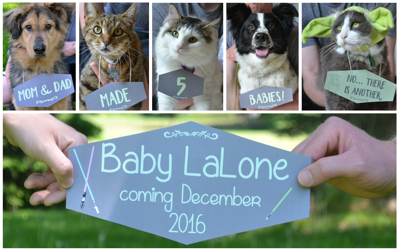 These are all SO awesome! We aren't telling people on social media for another couple of weeks (after my NT scan and such), but I took photos and made our announcement graphic ahead of time: I seriously cannot stop laughing at the Yoda cat hat. Good lord.