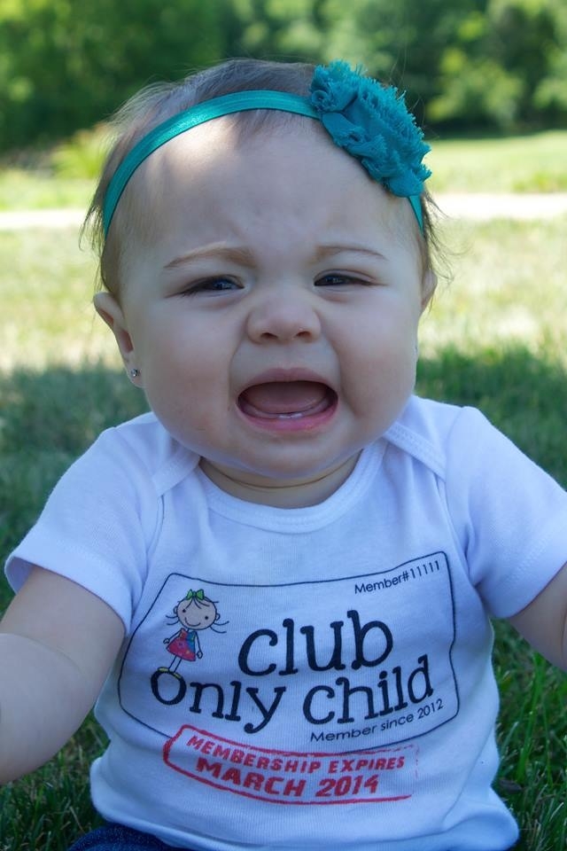 We ordered a t-shirt for our daughter that says "Only Child...status expires Dec 2016". We're just going to put it on her and see how long it takes for our families to notice.