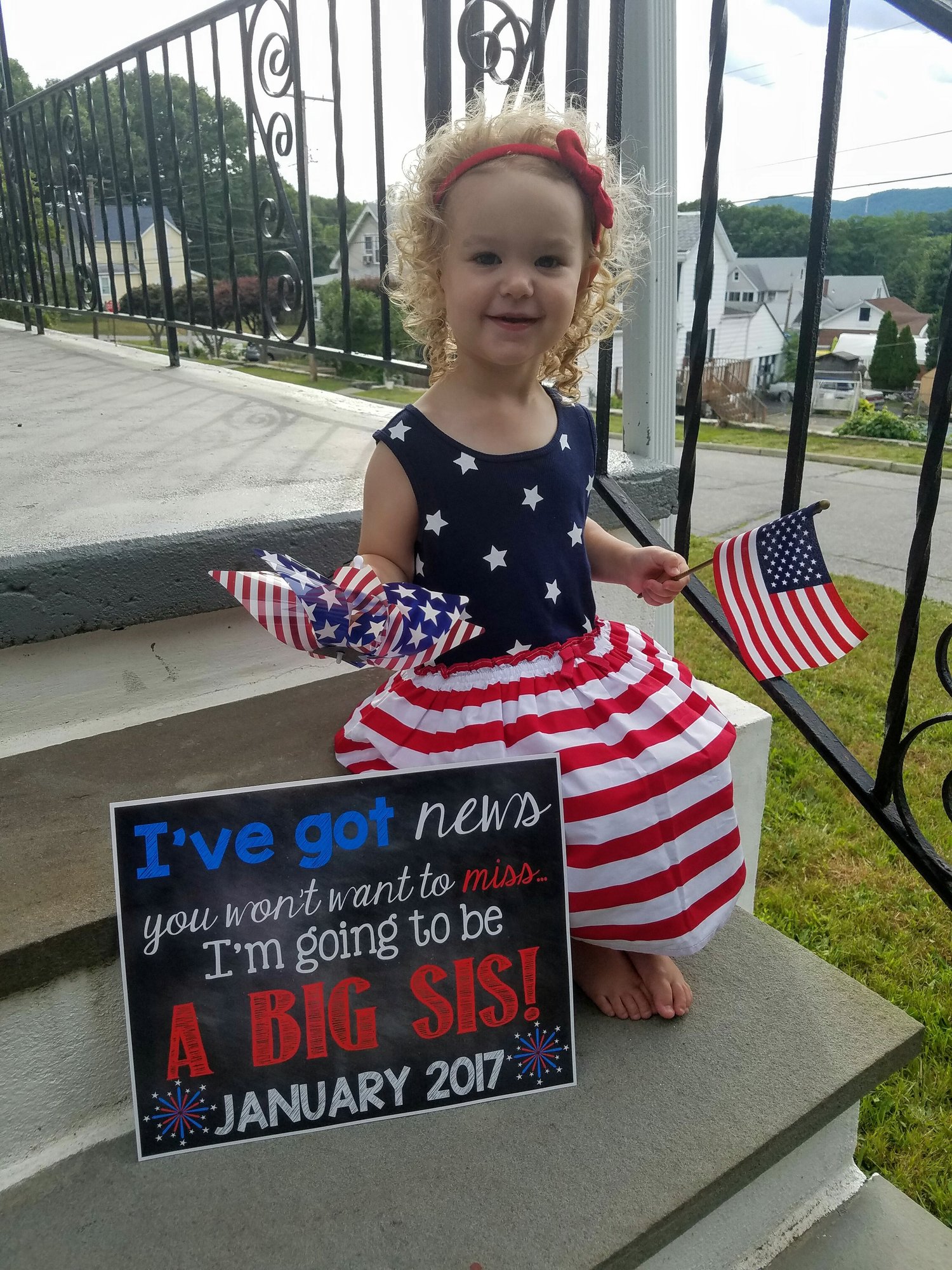 We announced on social media today! The caption said "We're celebrating Fourth of July differently this year!" We also posted another picture that says the baby is due in January. The Fourth made this super fun!