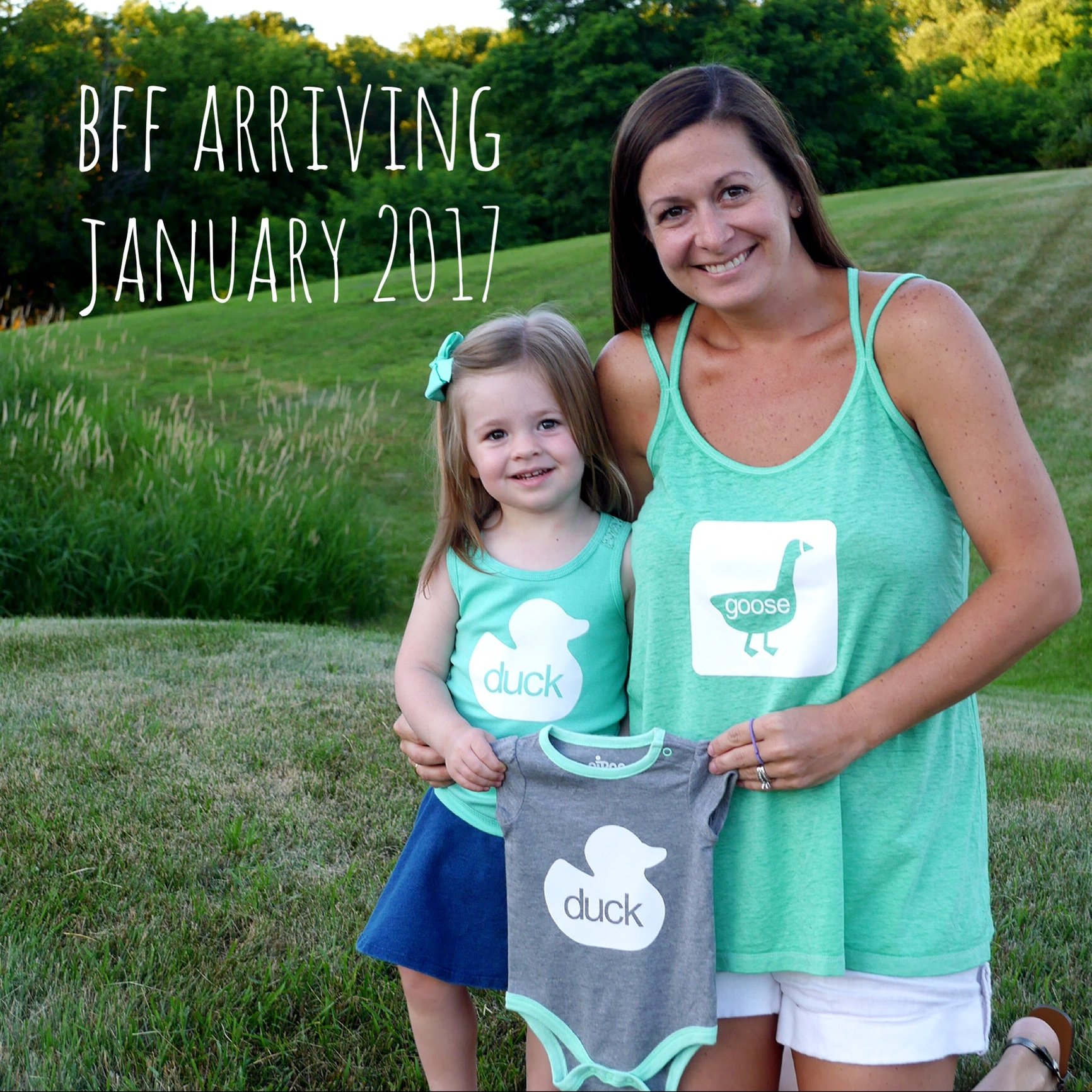 I am thinking about posting a pic of the kids in their shirts without a caption next week after I tell work. I didn't announce on FB until 6 months with my son, so I'm not sure.
