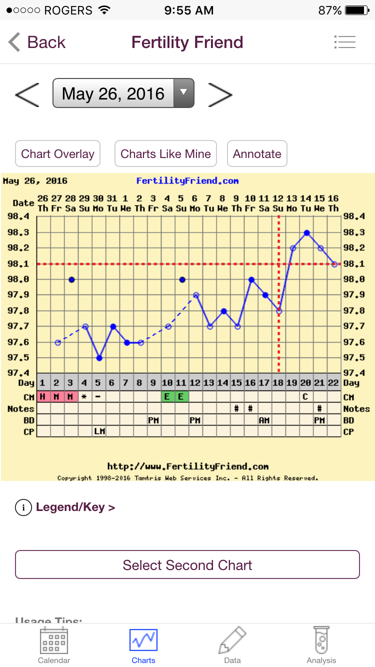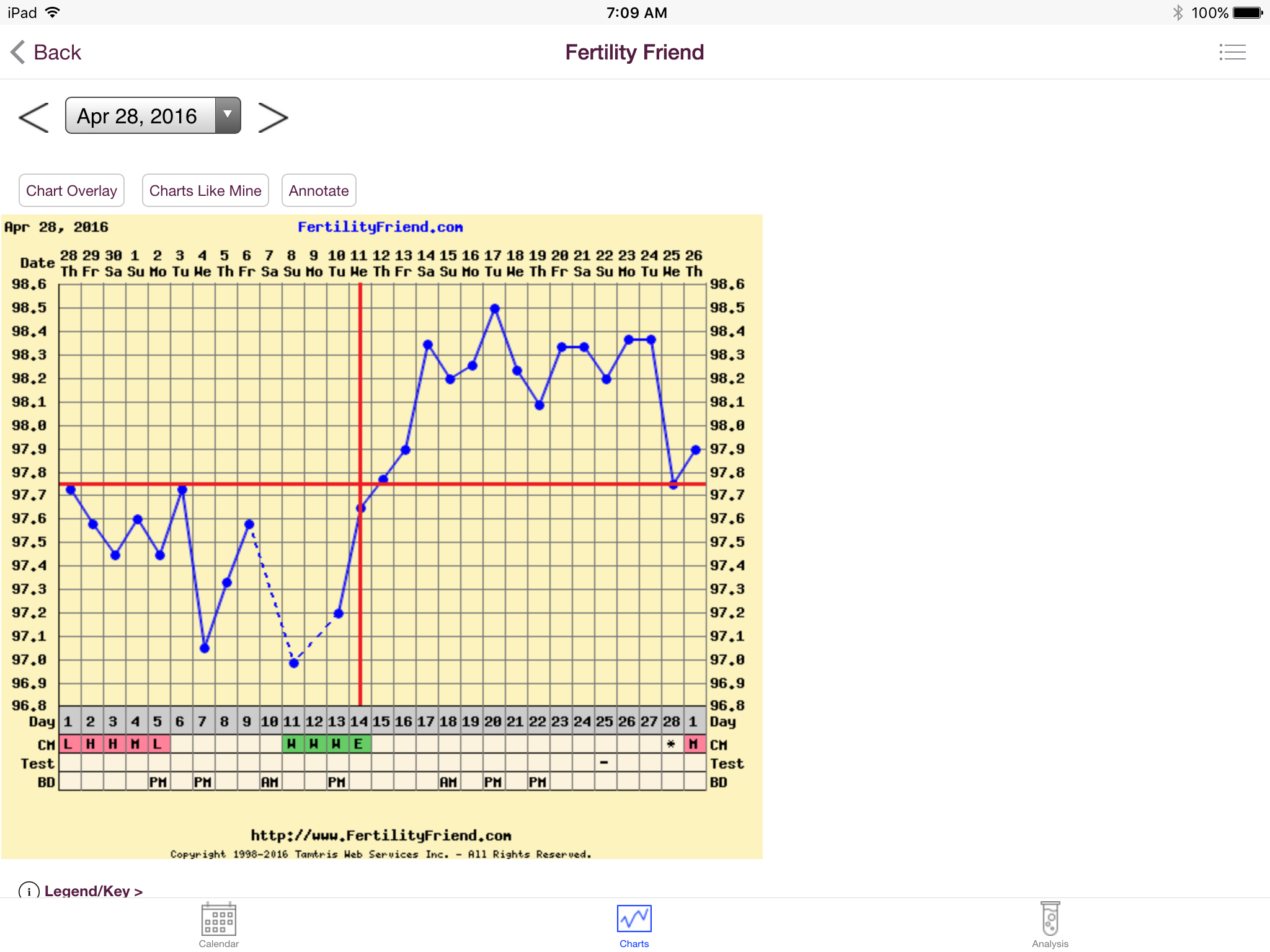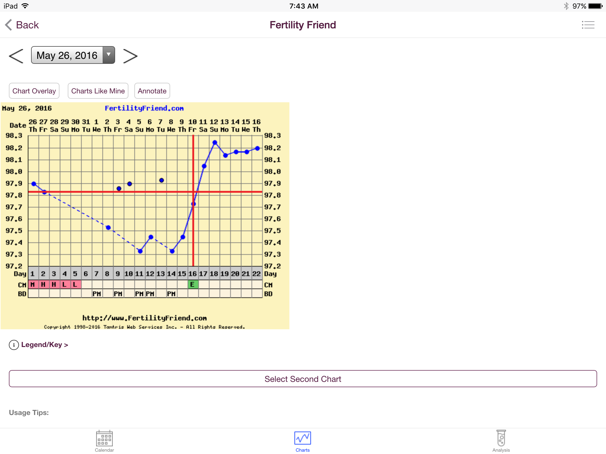 This cycle I had a huge dip on ovulation day and then it had a huge jump like they tell you it is supposed to. I was travelling this FW, so I don't know. I'll know if I hit my 16 day luteal phase if that really was O day. I think this link will take you to my profile ?
