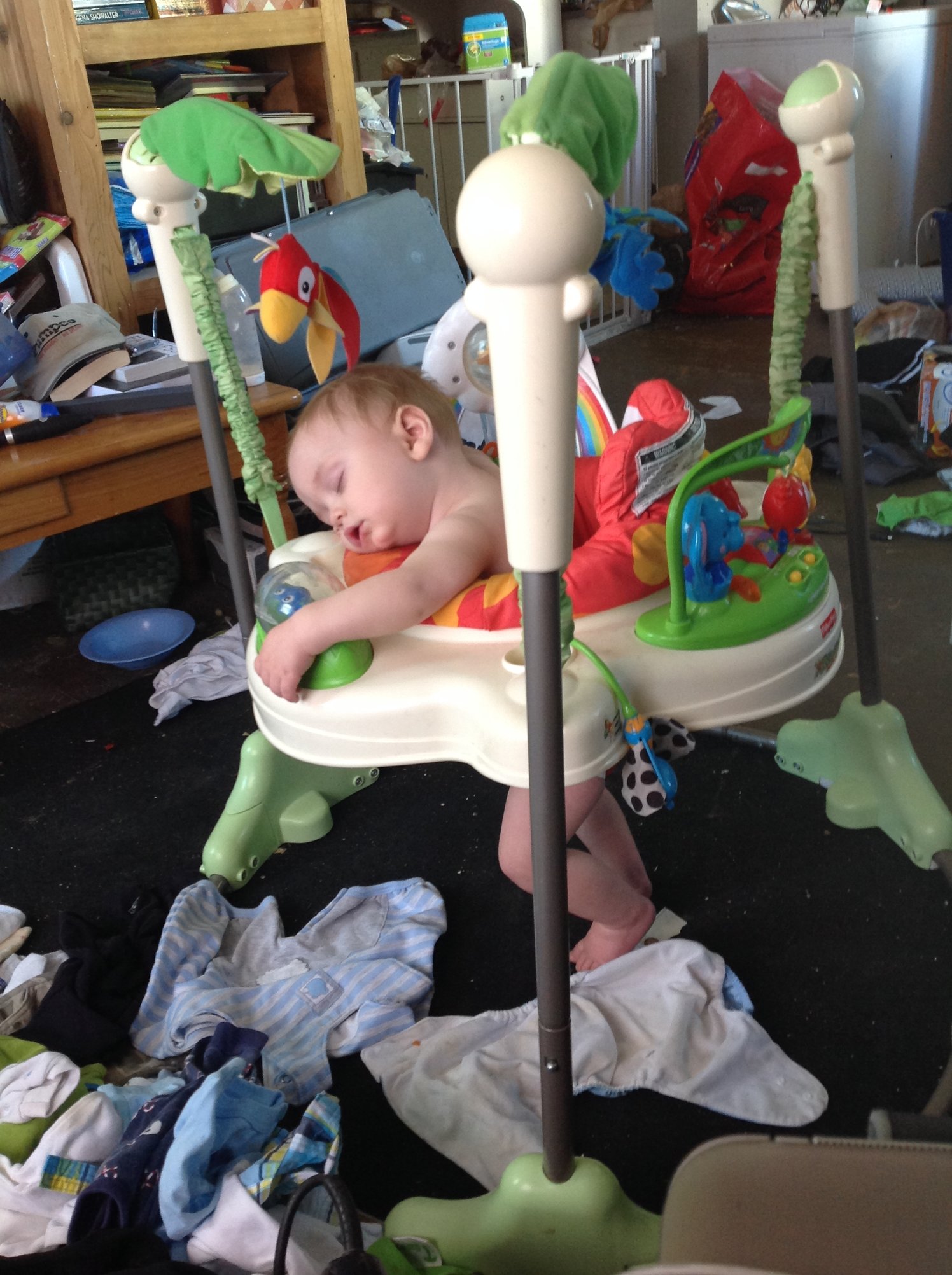 L just can't handle not being in his bouncer. If I try to take him out right now he wakes up, and throws a fit until he gets back in the bouncer. Sorry for the large pic. I can't figure out how to make it smaller. Also sorry about the mess, I'm sorting L's clothes into too big/too smal