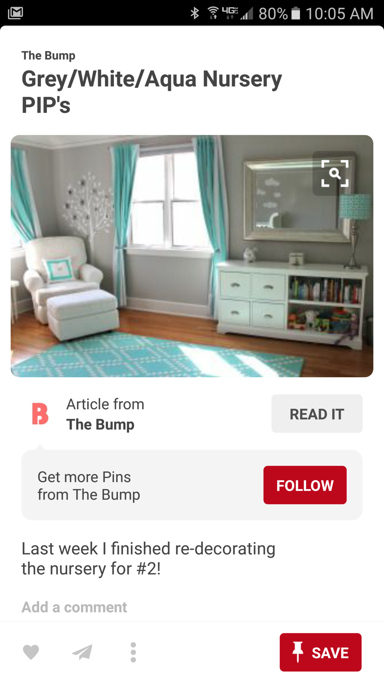 Me too! We painted the nursery Grey and white and I love the turquoise accents!