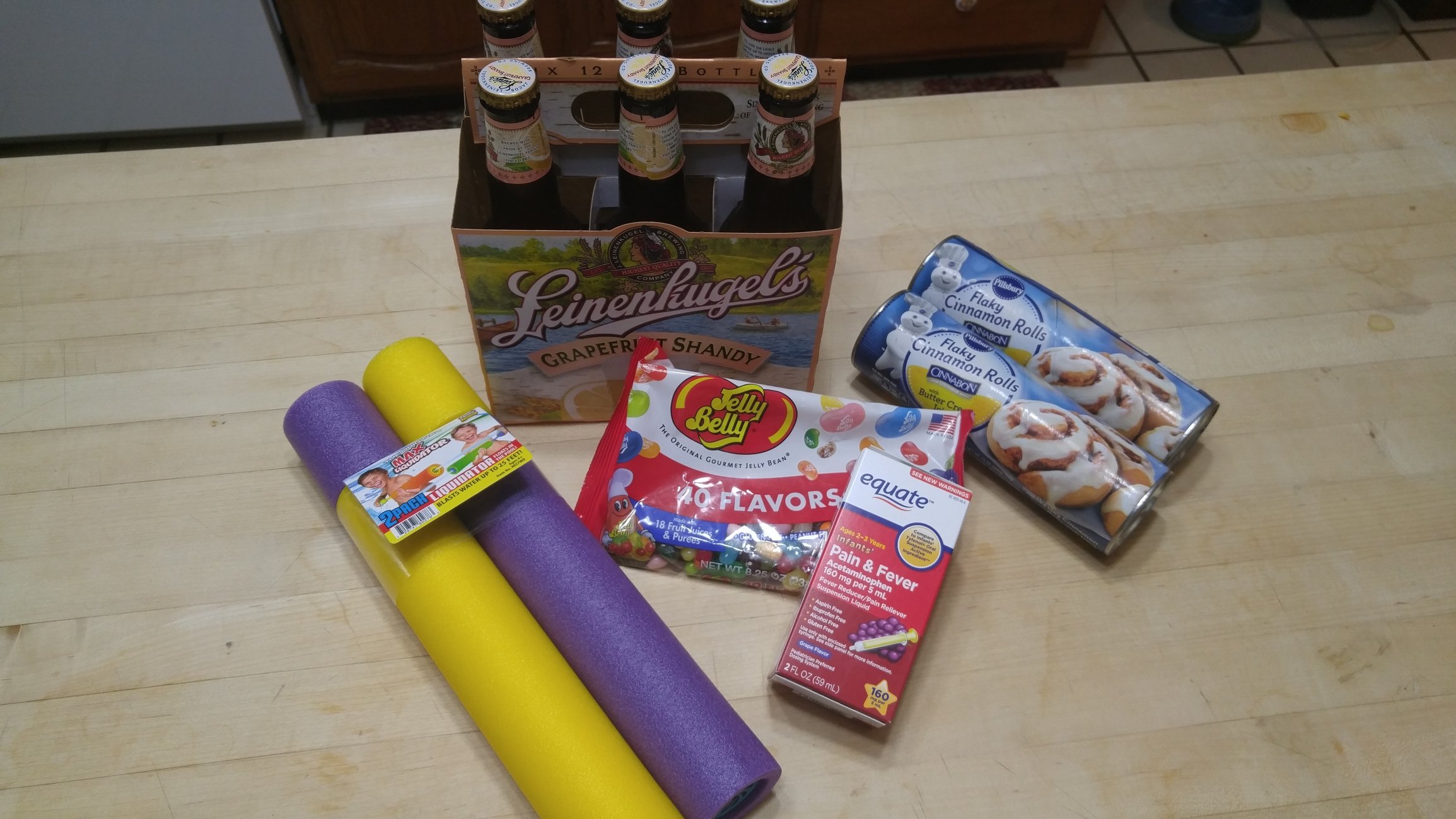 In his defense, his coming up with the idea of baking with her while she's home sick is super endearing...and I'm fairly certain the beer is for later, haha.