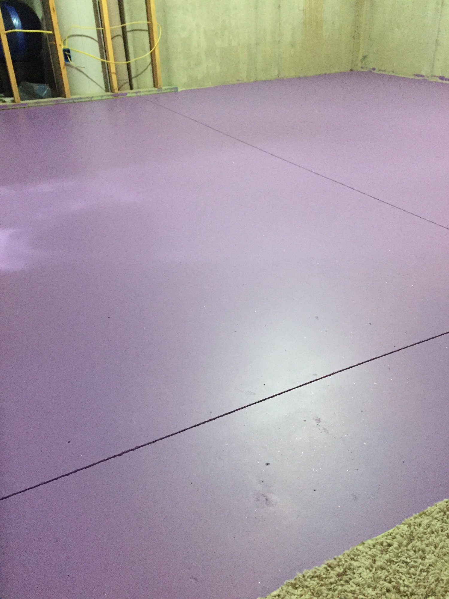 The floor is done! I still need to look into putting a clear coat on it, but this is the concrete after 2 coats of purple sparkles. It looks so obnoxious right now, but I think I like it! I'm hoping with furniture and a rug it will calm it down a bit...