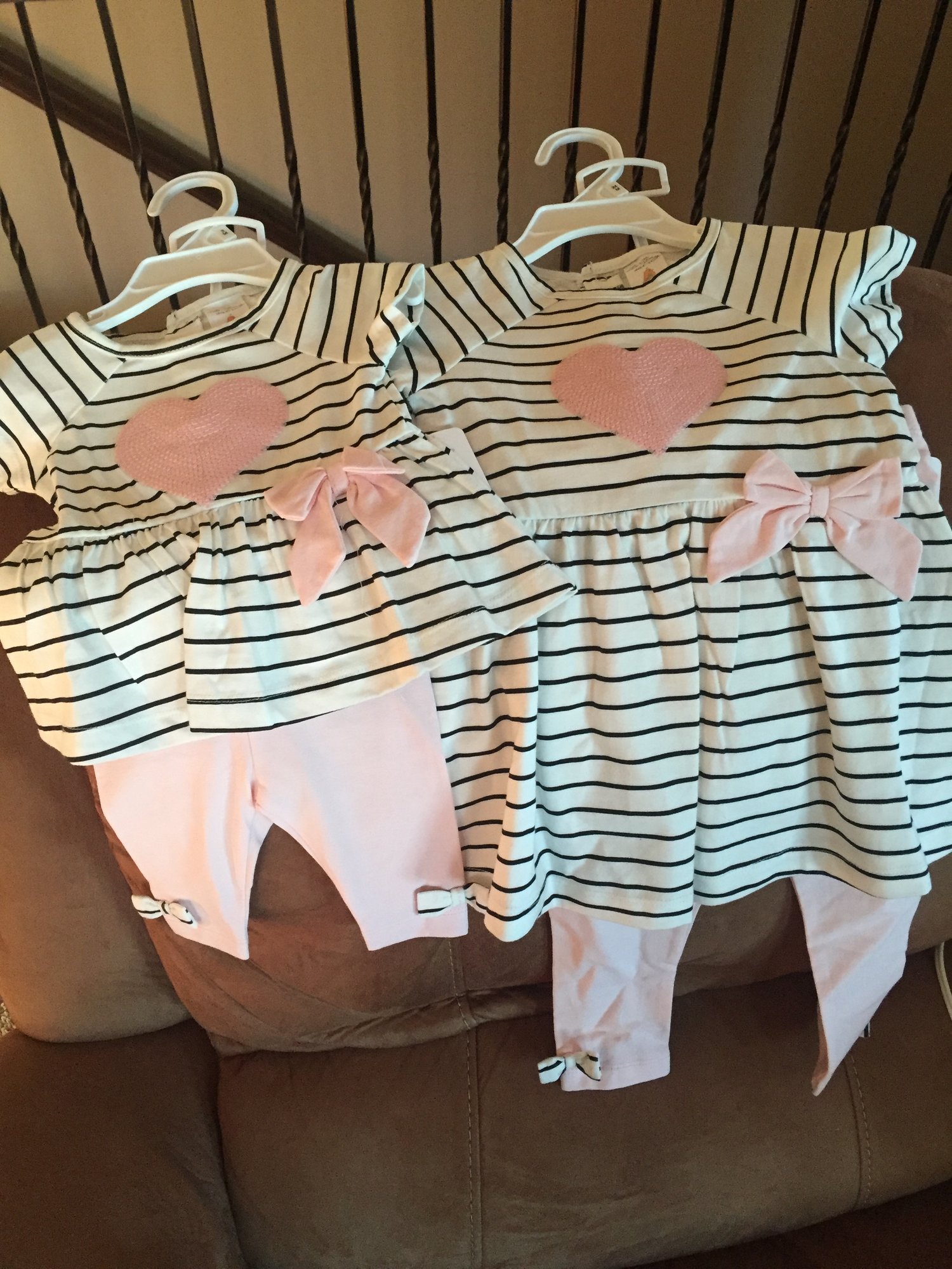 I finally found matching outfits for my girls! 24 months and 0-3 months. Pink hearts and bows aren't generally my thing, but I was jut happy to find something! Anybody have suggestions on where to get matching outfits? I would love to have a few to dress them up in, but most places don't carry the same outfit in such a wide range of sizes.