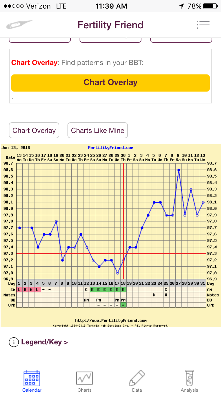 @chloe97@RiverSong15@BornReady you know what, maybe you're right. this is only my second cycle temping/charting so i'm still learning the ropes. last month i never got a positive opk but my temps were much clearer. im kicking myself for stopping opk after i got 1 positive so idk how long the surge was and these temps are harder to read. GAH! thanks again for the input, you ladies rock.