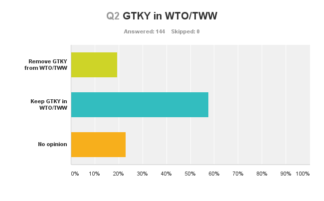 18. For the first question about questions being posted, I said no opinion because my opinion would be to direct them to the weekly question thread instead of wto or TWW (if the question thread vote goes through, which is what i voted for later in the survey). Hopefully that makes sense.