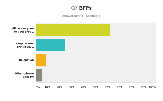 Q7 = Allow everyone to post BFPs in the weekly thread (vs current restrictions for "regular" posters)