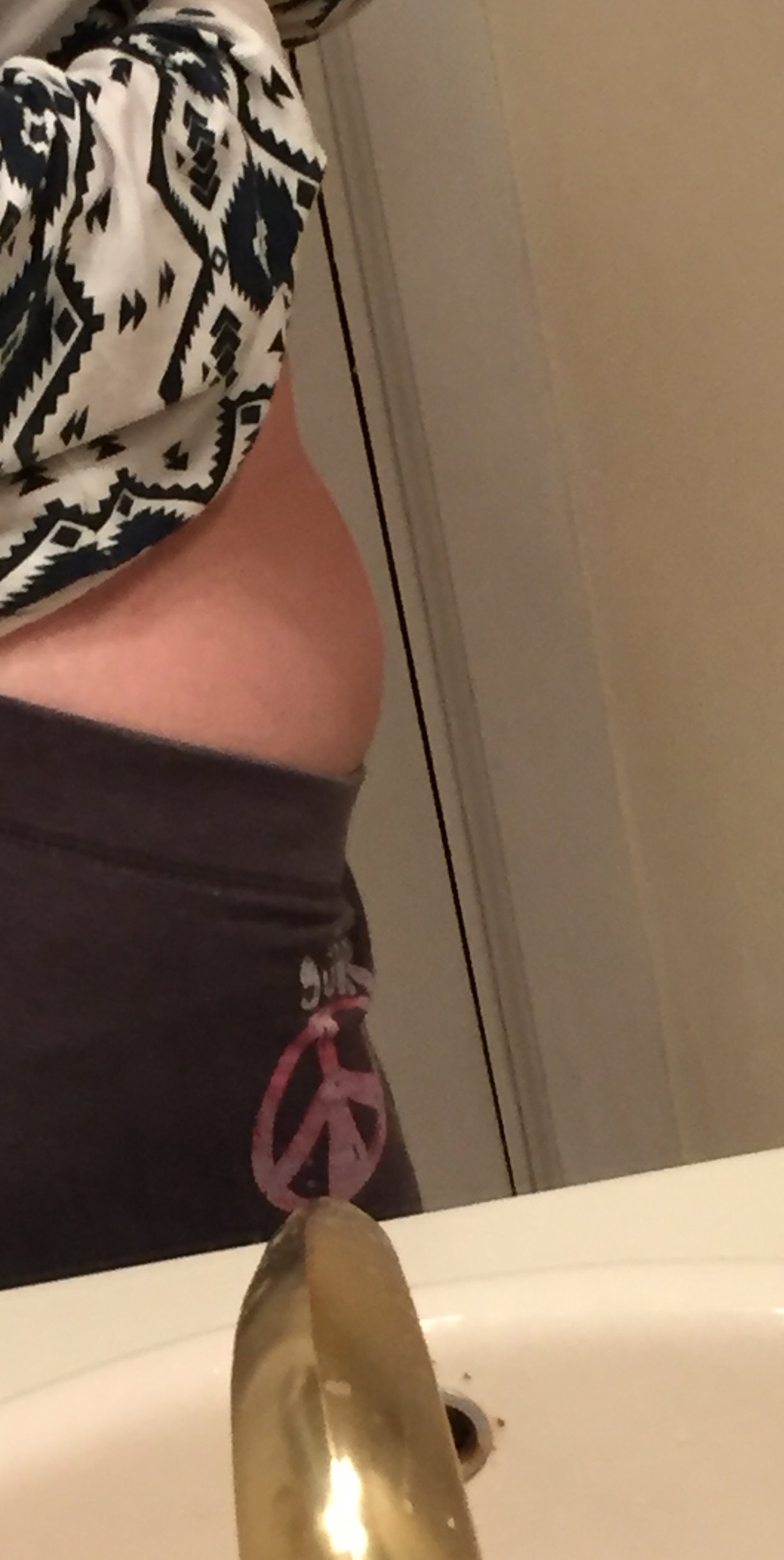 This pic was taken last week when I was 9w. I go back to work on Monday so I hope no one notices, and that my dress pants still fit. I think for now people will just think I got fat. I haven't gained any weight, yet my entire body looks like a swollen, 20lb heavier version of myself.