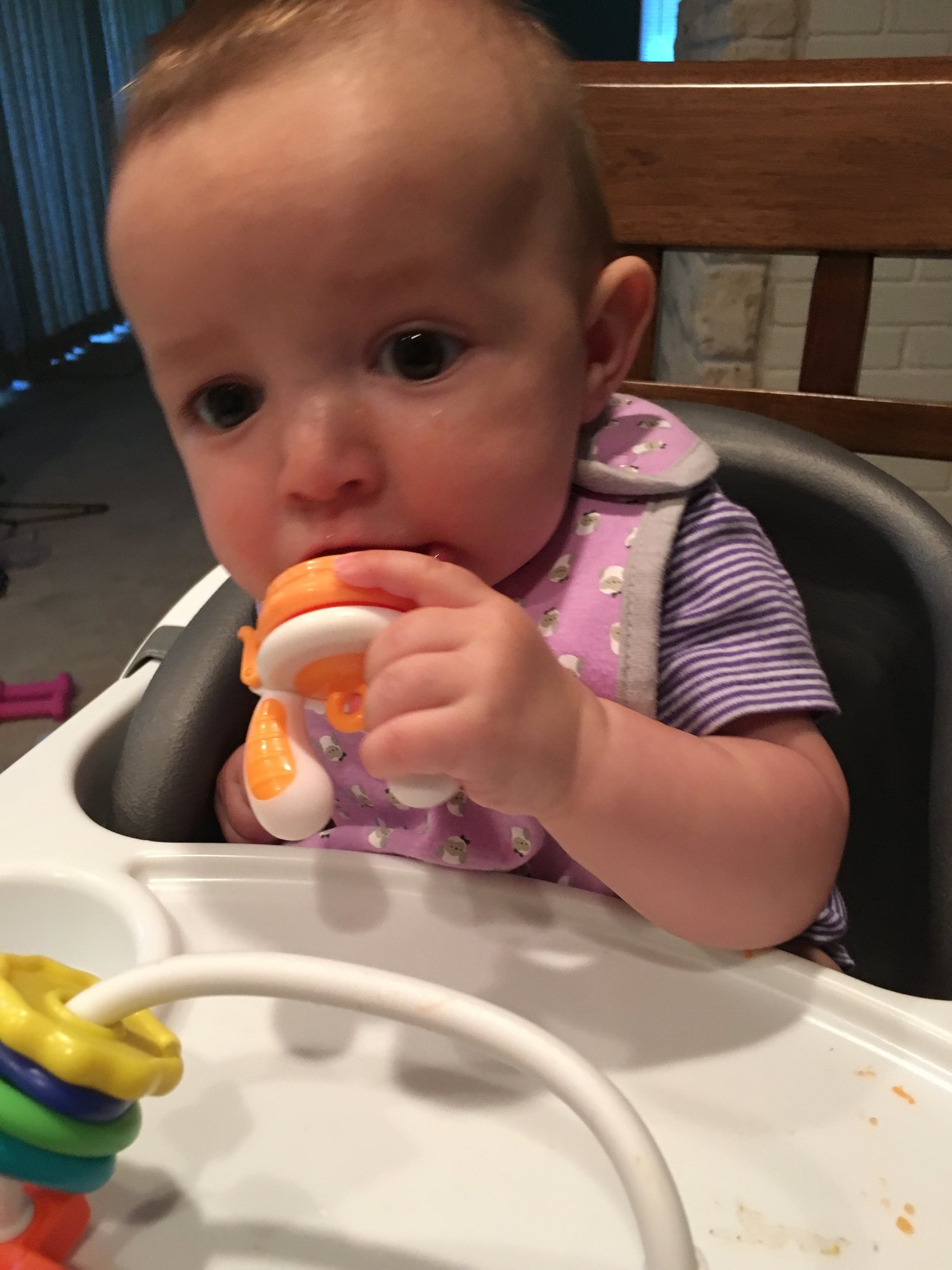 @lilqt3929 my DD does fine with thicker stuff eating-wise, but she got a little backed up in the bowels last week. It could be that she was dehydrated (it was HOT last week and my mom kept them at her blazing hot house during the day instead of bringing them to mine with AC, grrrr), but I'm wondering if maybe I need to water down her food some instead of just mashing it straight?