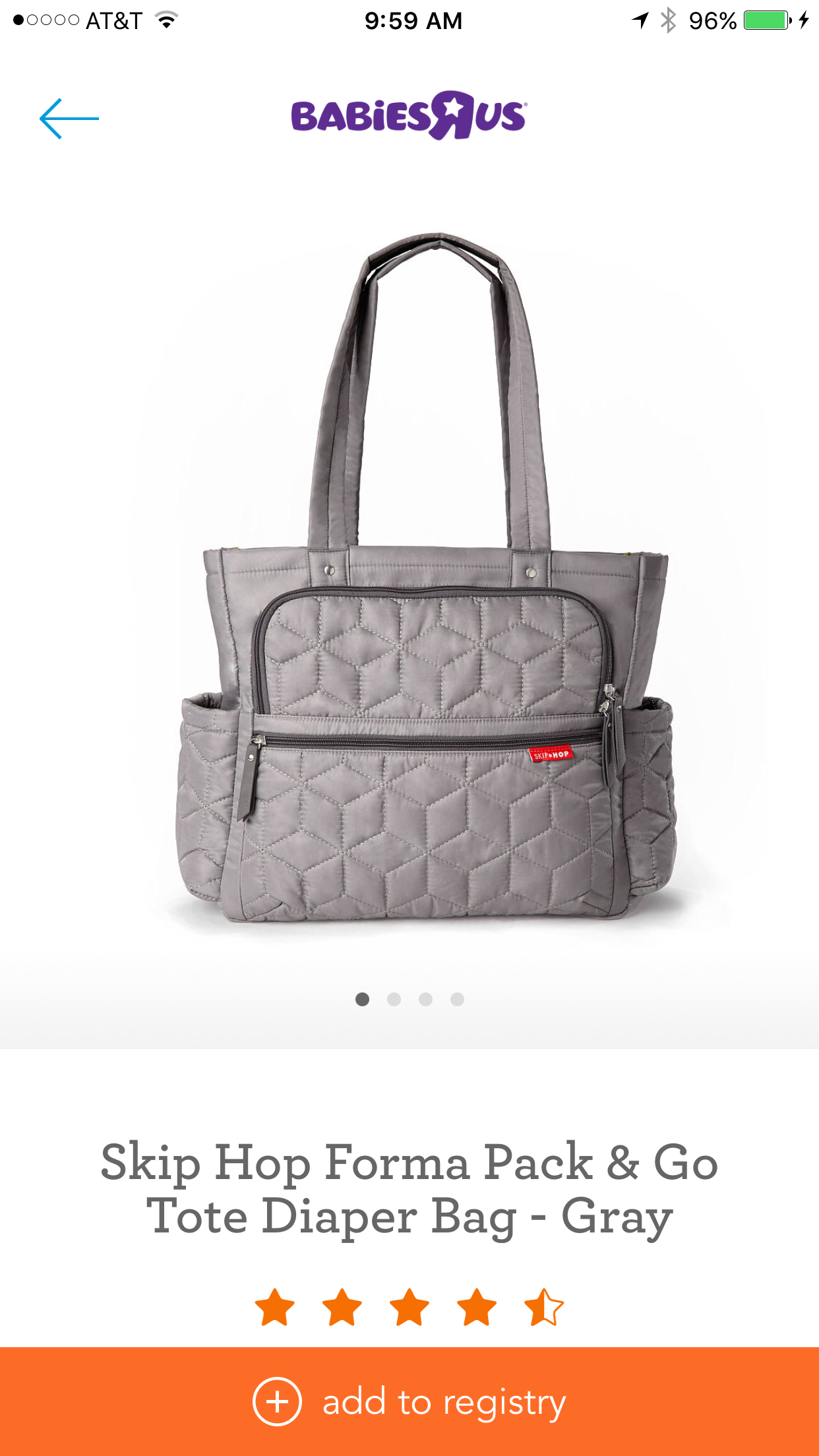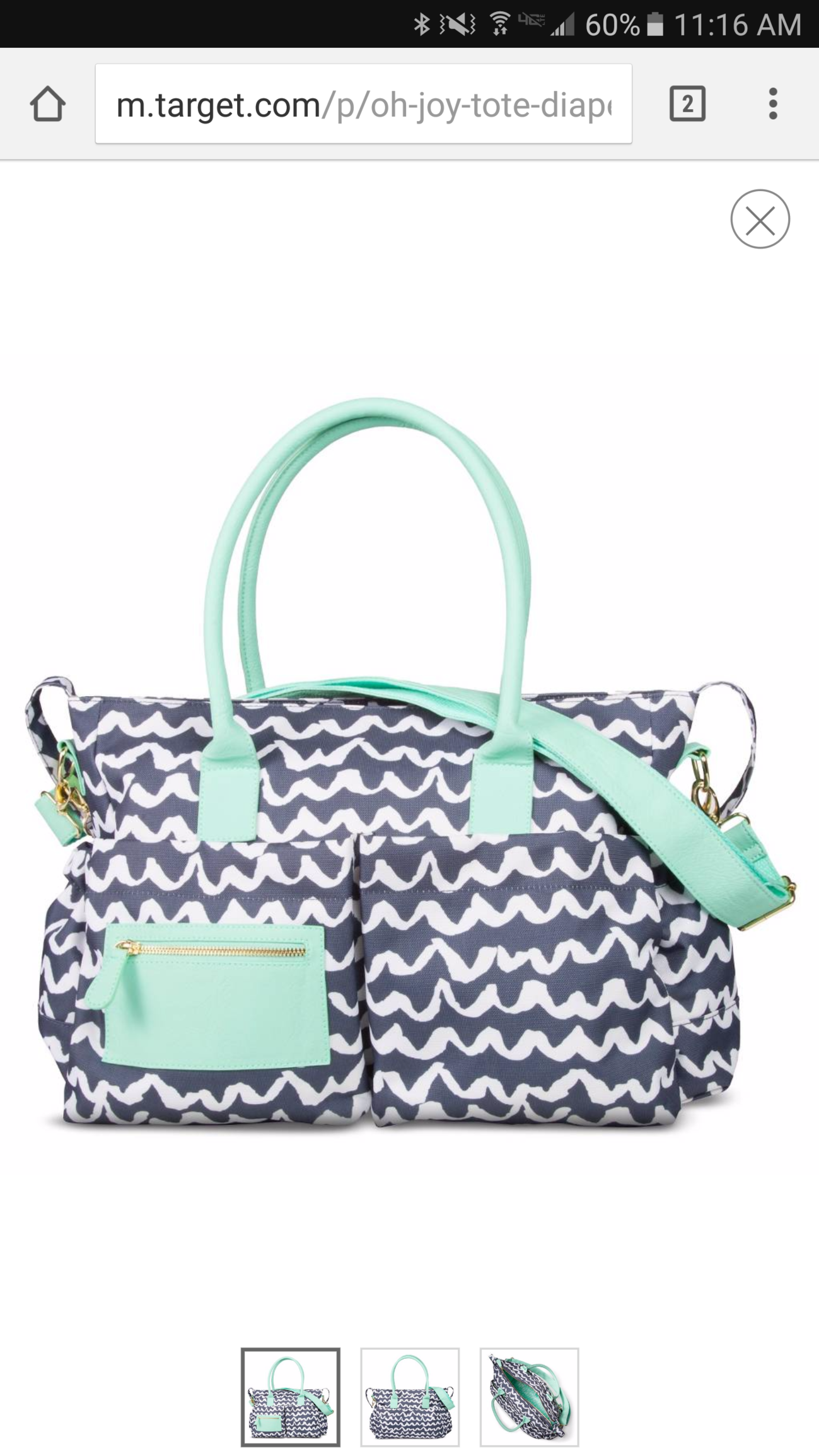 We originally registered for the skip hop in gray and white chevron as well but we didn't like it as much when we saw it in the store, it was much smaller than I thought it was going to be. We registered for this instead. It's the Bumble bag Amber tote