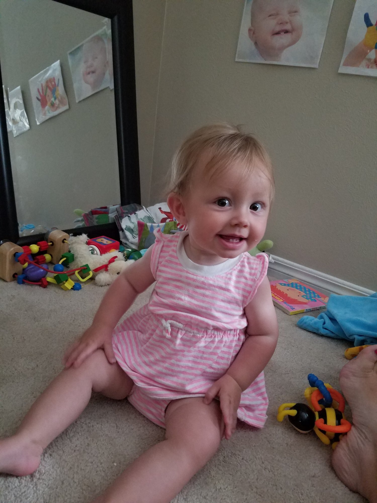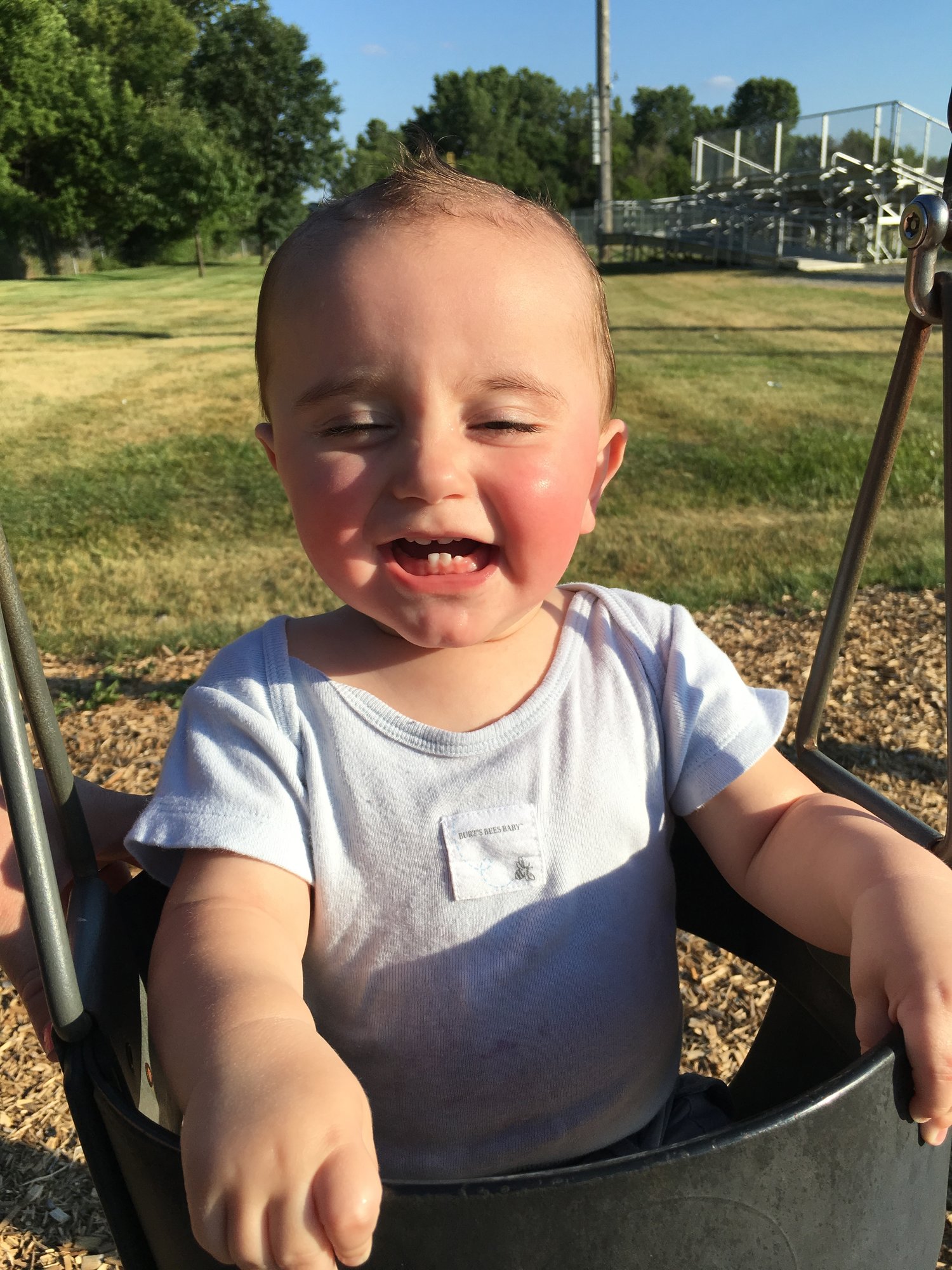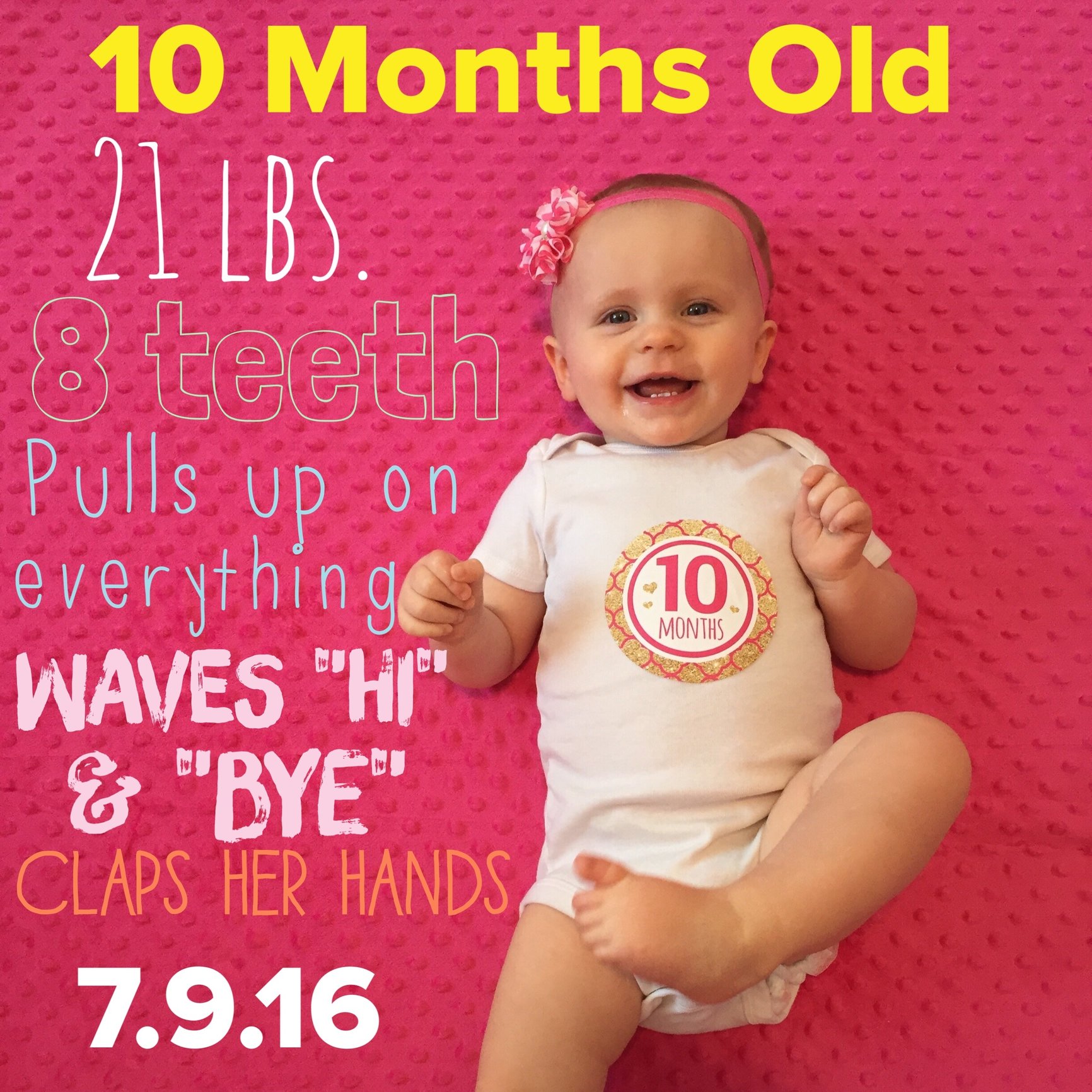 Love seeing all your beautiful babes! Cary is 10 and a half months. Only 2 teeth on the bottom. He's been cruising since he was 8 months and just started standing without holding on. We also (finally!) did sleep training and it's been life changing! He's so much happier now and so am I! Can't believe how quickly they grow!