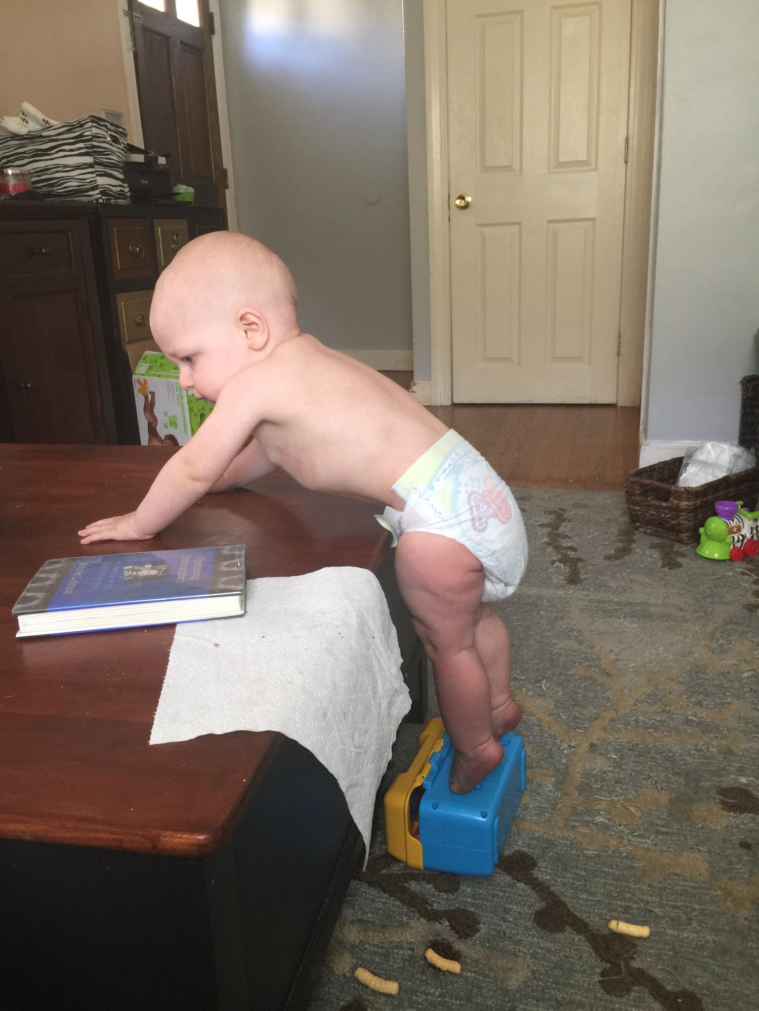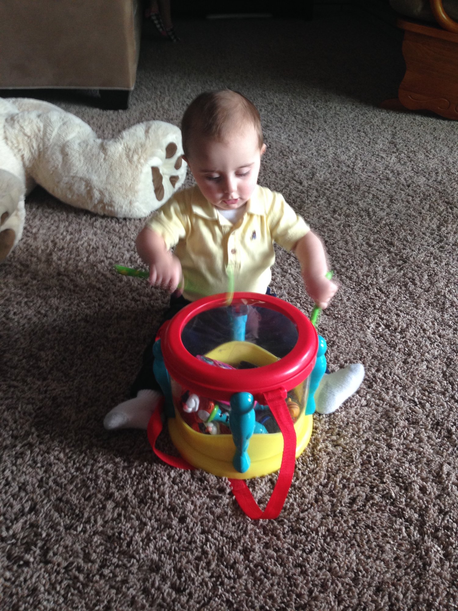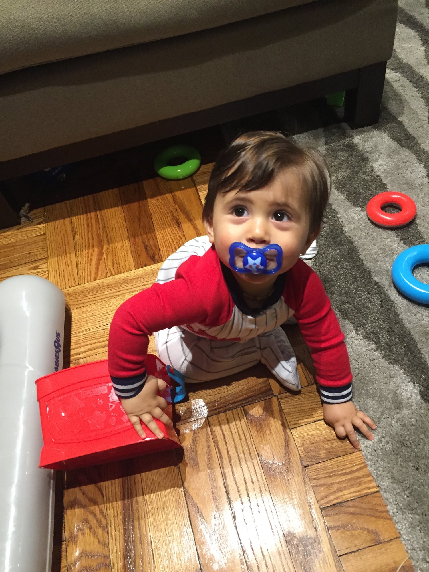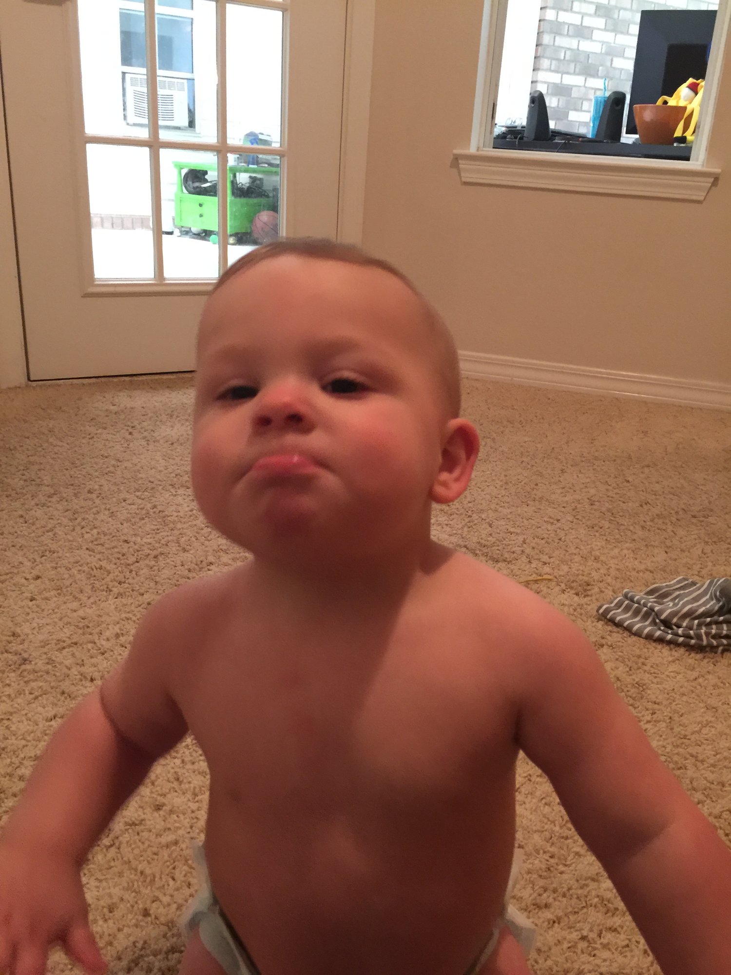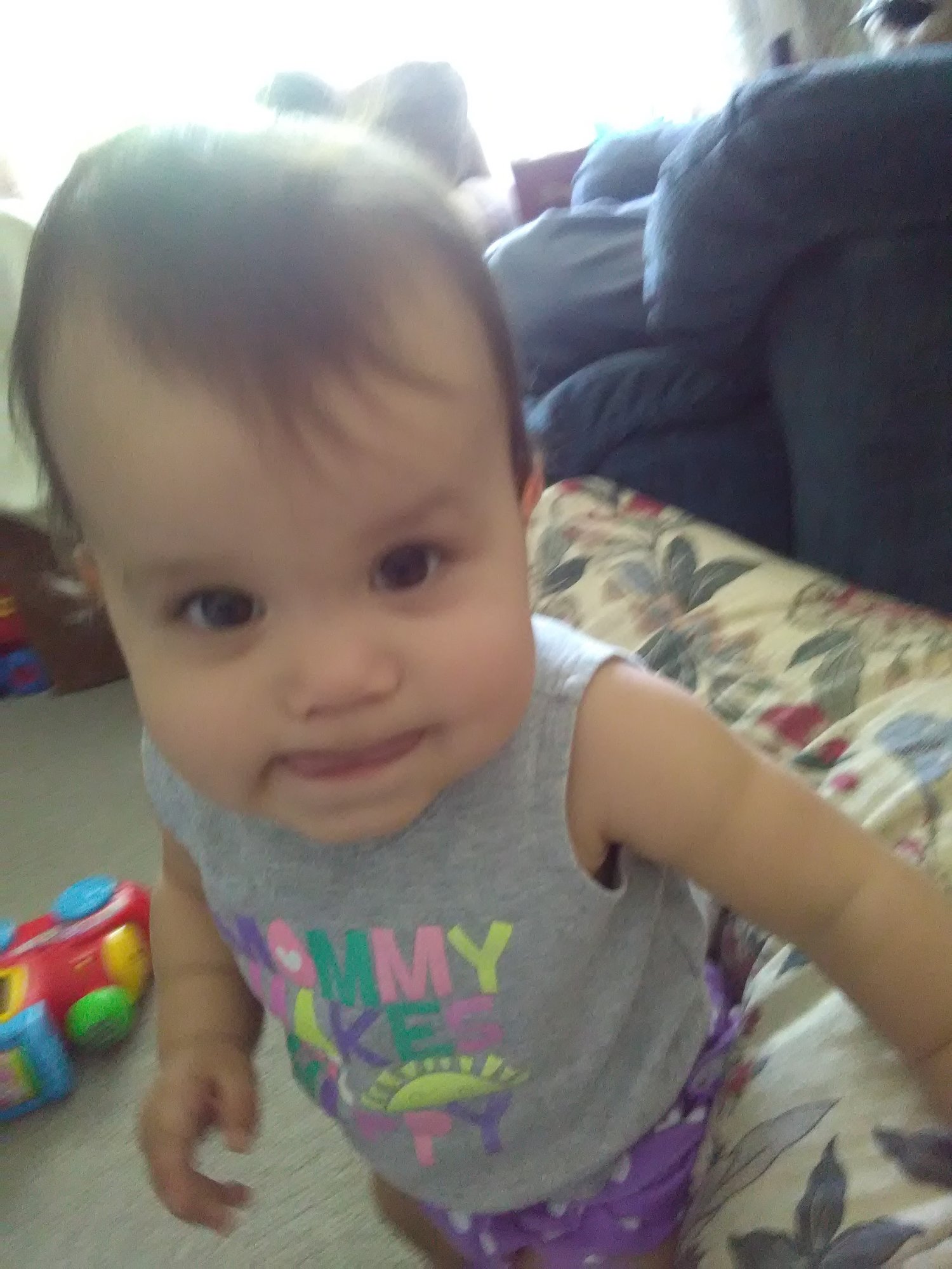 Just took this picture now. Yes I'm the bad mom letting my kid play with a bottle cap. Some days I'll do anything to stop the whining lol.